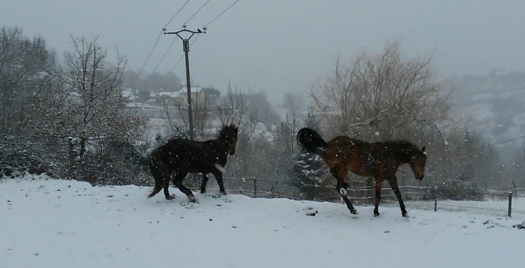 | Dire merci | Ici aussi la neige... Photos de ma Loupette sous la neige ![]() ![]() ![]() et comme ça donne la pêche la neige... ![]() ![]() ![]() ![]() Niveau intendance pour l'instant pas de couverture, elle sait rentrer dans son box quand le besoin se fait sentir, j'ai doublé les rations de foin des deux et j'ai fait péter le regain bien riche de l'année dernière pour réchauffer les organismes ![]() Message édité le 04/02/15 à 10:43 |