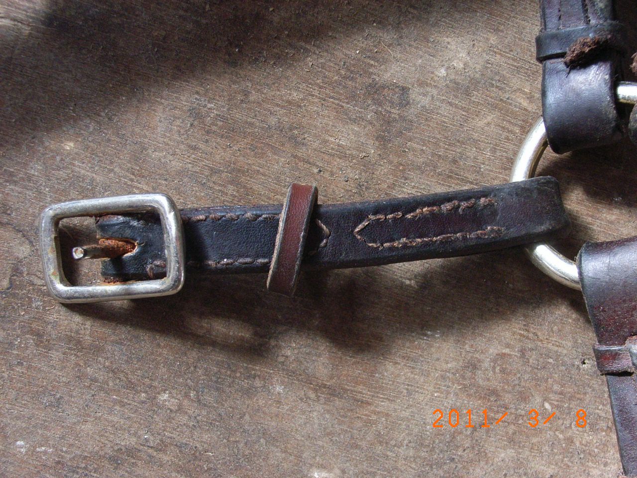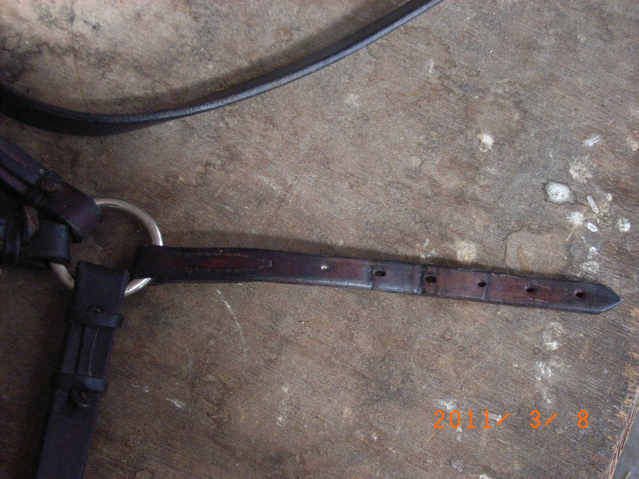 | Dire merci | Eureka ca marche ! Mais je ne comprends pas pourquoi .Voila donc, de cette maniere le side reste bien en place , bon c'est une sous-auge un peu plus basse mais il n'y a aucune gene . Effectivement, palopowers80 c'est bien le meme side-pull j'ai regarde de nouveau le site . Ce cuir n'est pas le top , il faut donc l'entretenir regulierement ... Consommation de savon glycerine assuree mais il me (nous ! la jument aussi!) convient, au depart j'avais tellement d'incertitudes . N.B.: Avis aux sellier(e)s du forum , ne regardez pas les coutures en detail s'il vous plait ... |