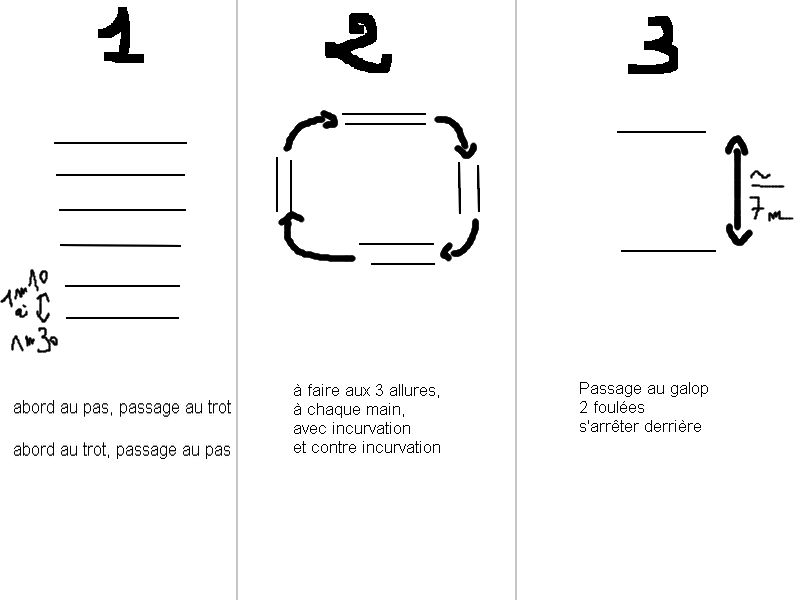 | Dire merci | Les exercices sont tirés de magazines donc je pense que les foulées sont adaptées pour les chevaux de taille moyenne |