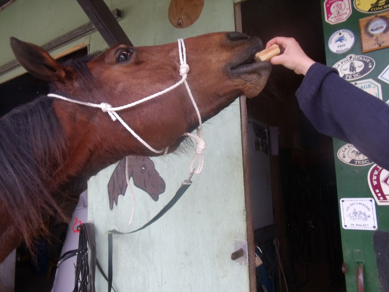 | Dire merci | Le post des morues qui refait surface, chouette ! Ma morue se porte bien, elle entre dans son 5ème mois de gestation Autant elle a été chiante les premiers mois, autant en ce moment, c'est une morue qui s'ignore, elle est zen, la gestation semble lui réussir ... Bon par contre, l'acceuil est le même, que ce soit au box ou au pré, les bananes, toujours plaqués sur le crâne |