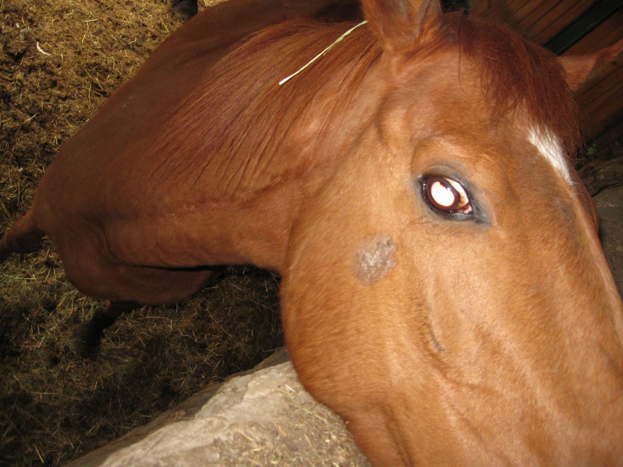 | Dire merci | Bonjours à tous, Depuis plusieurs semaines, et tout comme l'an dernier à peu près à la même époque, le cheval que je garde a une tache ronde qui se dépoile sur la joue D'une grosseur d'à peu près une pièce de 5 francs, la peau est saine, ça ne prend pas plus d'ampleur D'aspect c'est sec, le peau est grisâtre, et légèrement irrégulière, mais rien d'autre à signaler (pas de démangeaisons, pas de plaie...) ça ne m'inquiète pas franchement mais quand même je m'interroge, d'autant plus que l'année dernière il avait exactement la même "tache" au même endroit, qui a totalement disparu avec les poils d'hiver Avez-vous une idée de ce que ça pourrait être? je vais aller faire une photo ça vous aidera peut être |
