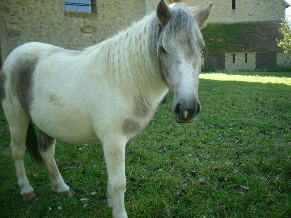 Pour ta ponette, elle est jolie, et je pense comme les autres, elle terminera blanche! puis, je préfère voir un poney "crade" mais heureux d'être dehors, qu'un poney bien propre et enfermé. Ceci dit, je ne dis pas que la tienne était crade sur la photo! Par contre, ça serait chouette de la voir sans son poil d'hivers, quand il sera tombé  |