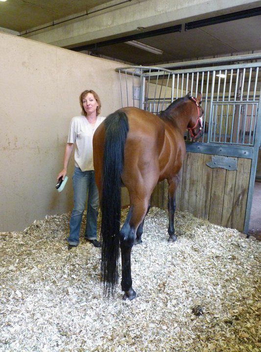 | Dire merci | Faber Arabians Bérengère Fayt La vente de charité commencera aujourd'hui !!! A emporter : les saillies de 75 étalons pur-sang arabes et part-arabes !!! Je ne sais comment vous dire merci !! [url]www.tibet-pokupka.be[/url] ------------------------------------------------ Faber Arabians Bérengère Fayt 5 juin : j'attends la visite de Karin Smeets, des Pays-Bas, qui me soutient chaque jour, a coordonné les dons via Paypal, se démène pour contacter des étalonniers et réunir des saillies, s'est occupée des traductions, et bien d'autres actions remarquables. Quelle joie de pouvoir lui témoigner personnellement toute ma gratitude et de lui présenter Tibet et Pokupka, ceux pour qui elle se bat. Pour les chevaux, l'amélioration se poursuit petit à petit. J'espère que les chirurgiens y verront un peu plus clair fin de semaine au sujet de l'infection de Tibet. Mille merci de votre présence et de votre amitié ! ----------------------------------------------- Faber Arabians Bérengère Fayt 6 juin 2011 - Visite de Karin Hier était un jour très émouvant pour moi ! Karin, notre bienfaitrice hollandaise est venue nous rendre visite. Quelle joie incroyable que de la rencontrer, si attentive aux chevaux, si engagée, si généreuse ! Mille fois merci, Karin, pour tout ce que vous faites pour eux ! Côté santé, Pokupka se frotte les naseaux sans cesse contre le mur, elle s'est arraché la peau et saigne sur les zones d'érosion. Le pansement la chatouille, à mon avis ou est-ce la cicatrisation ? Tibet, lui, a bon moral, j'attends les nouvelles pour savoir si les hypothèses de cause de l'infection se précisent. Ses plaies sont toujours larges et profondes, la zone située sur le chanfrein a plus bel aspect que celle sous l'oeil, qui purule toujours. Il semble qu'il souffre moins et je l'ai trouvé plus lumineux. |