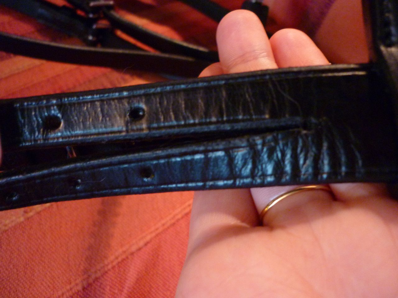 | Dire merci | C'est un défaut du cuir, si ton bridon coute un peu de sous, n'hésite pas à aller râler à la sellerie où tu l'as acheté ou même directement auprès de la marque. |