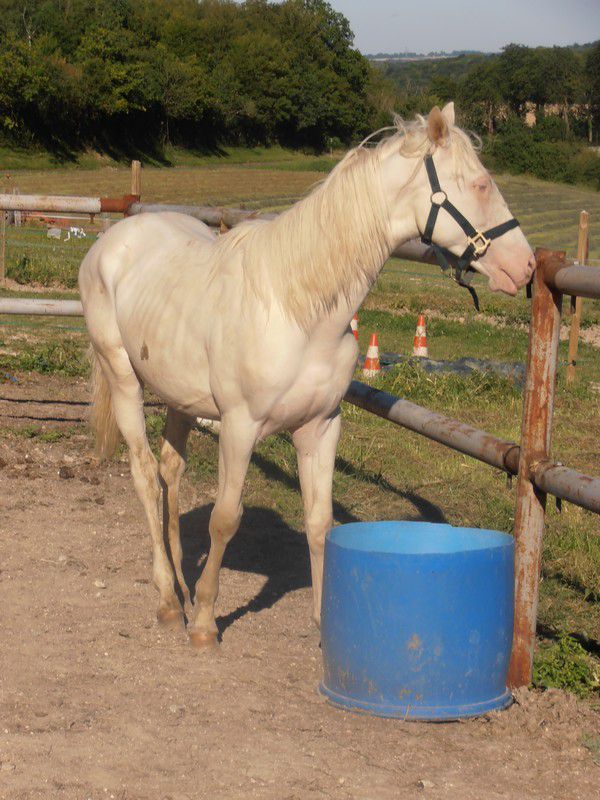 | Dire merci | JOYEUX ANNIVERSAIRE BOSKO !!! 2 ans aujourd'hui !! Il y a un an je suis allée chercher ça ... ![]() Un poulain de 1 an, pas manipuler (il n'avait meme jamais vu un licole !), sale,méfiant mais curieux ! Avec une bouille d'amour... Et aprés plein de travail et de patiente j'ai ça : ![]() Une glue, adorable, joueur, curieux et gentil comme tout ! |