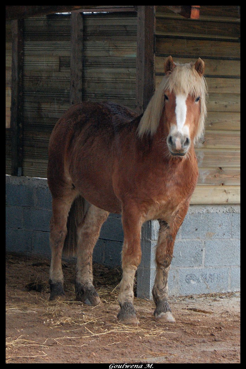 | Dire merci | Boycott m'a fait rire aujourd'hui. Je rentre dans le box pour lui donner le grain, comme tjrs je laisse la porte ouverte pour pas etre coincé. D'habitude il est sot derrière mon epaule pour se jeter dans la gamelle soit il regarde les chiennes devant sa porte. Mais aujourd'hui il a tenté l'evasion discrete le nez au sol, sur la pointe des sabots et tout doucement.Bien sur il est pas allé bien loin mais sa façon de faire m'a fait rire. Comme si un gros machin comme ça pouvait disparaitre d'un box sans se faire voir... |
