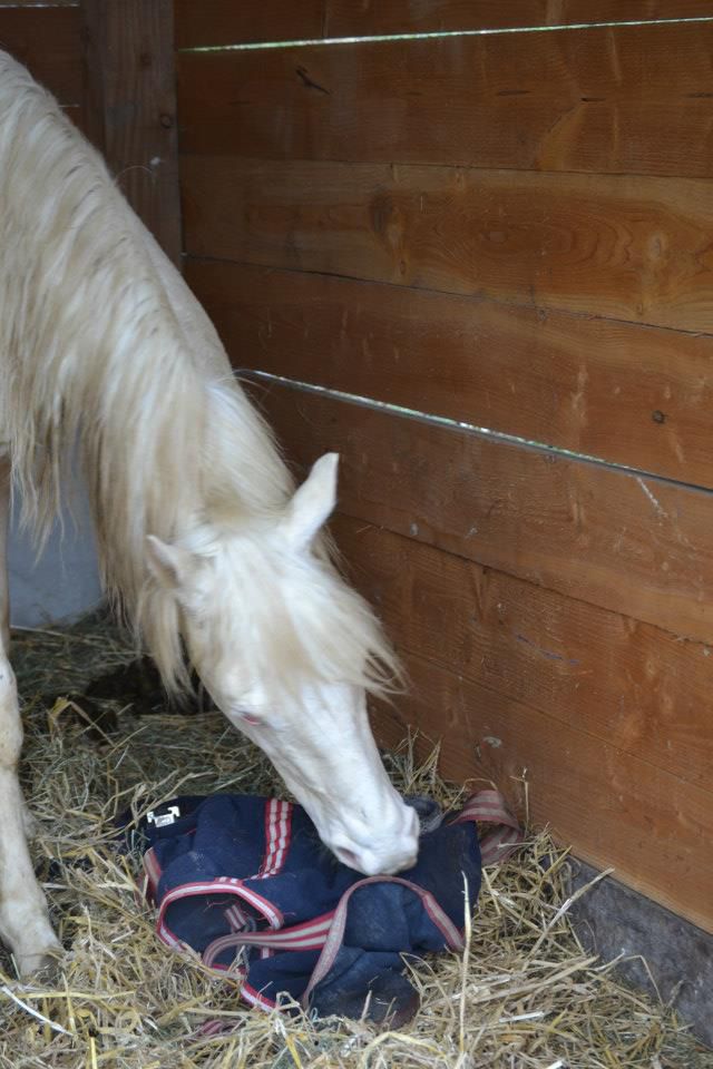 Déconnecté | merci oui si je m'occupe de la jument il passe son nez au dessus de la séparation entre les toles et les planche ya 10cm donc pour passer son nez il doit se cabrer^^ et une fois son nez passé il hénnit si ca suffit pas il donne des coups d'antèrieurs dans les planches donc je cri et la il part à l'autre bout du box et jette ses gamelles essaie de renverser son bac d'eau arrache sa couverture... c'est assez drôle à voir ^^ sauf l'arrachage de couverture...Si si c'est encore le tout petit bébé à sa maman^^ il a que 18 mois mdr |