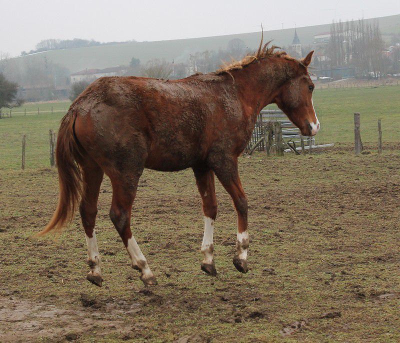 | Dire merci | Bonjour à tous! Depuis le temps, je vous donne quelques nouvelles de Birka. Elle va bien et la fracture de la hanche n'est qu'un souvenir. Le maréchal a constaté que les pieds postérieurs sont identiques, elle n'a donc pas compensé. Yeeees, c'est très positif! Si tout va bien, elle n'a rien, même pas dans le futur. = pas d'arthrose. Elle passe son temps au pré et prend exemple sur son tonton, mon mérens. Cela veut dire, je viens te voir les oreilles en arrière, pas contente du tout. La différence est qu'elle redevient sympa alors que mon noir fait la tronche. J'aimerais travailler la séparation, mais avec une route à côté du pré, puis le chemin de fer, j'ai la trouille. Depuis sa fracture je suis frileuse. En avril, je changerai de pré et ce sera plus facile. Voilà des photos récentes : ![]() ![]() ![]() Si non, comme je ne peux pas répondre à tous vos messages .... ... ils sont très beaux les B |