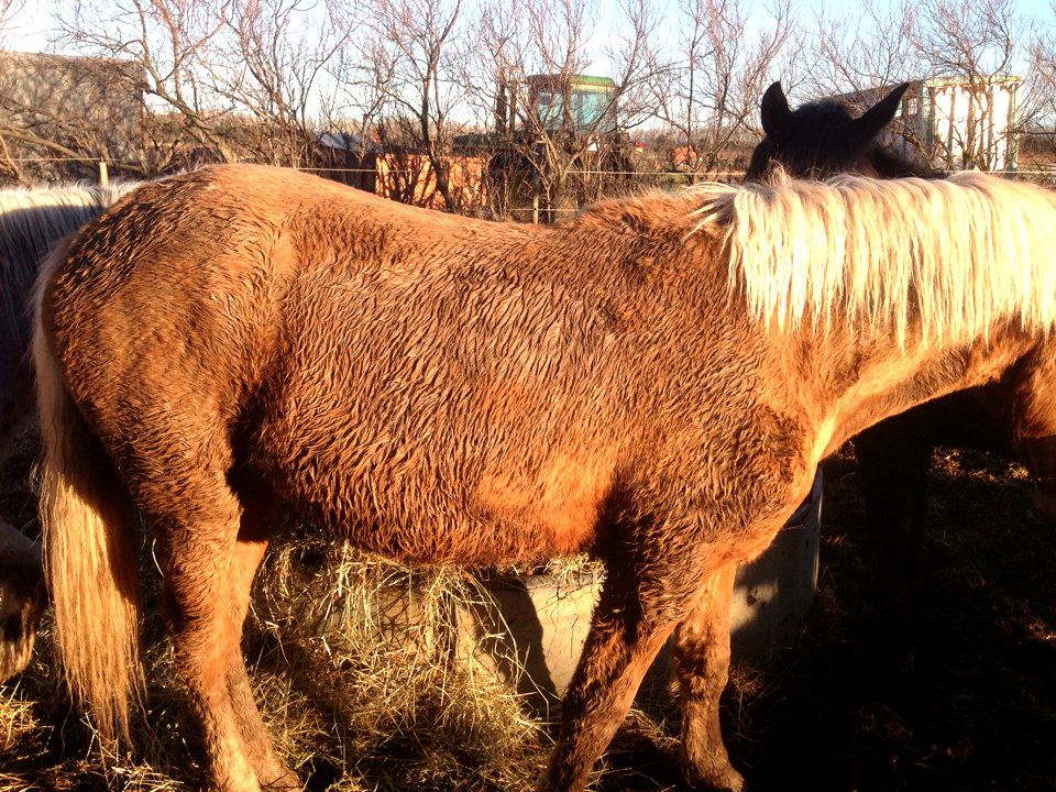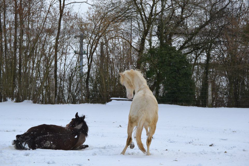 | Dire merci | Il y a 3 jrs mon gros bosko se doré la pillule au soleil et broutté avec plaisir et là dans 5 mins je vais aller mettre une parka , des gants et des mon boots pour aller le voir ds son abris et lui mettre du foin ....!!! Heureusment il a eu la bonne idée de garder sa grosse toison de poney Haflinger en mode nounours ! |