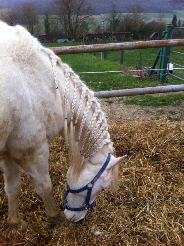 | Dire merci | Du coup sa crinière va aussi changer de couleur, ou ça va rester mais elle va pousser grise par la suite? Ah ben si tu veux pas blanc fallait prendre un frison |