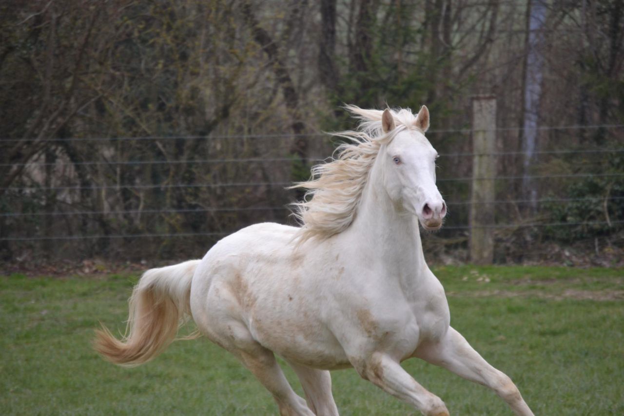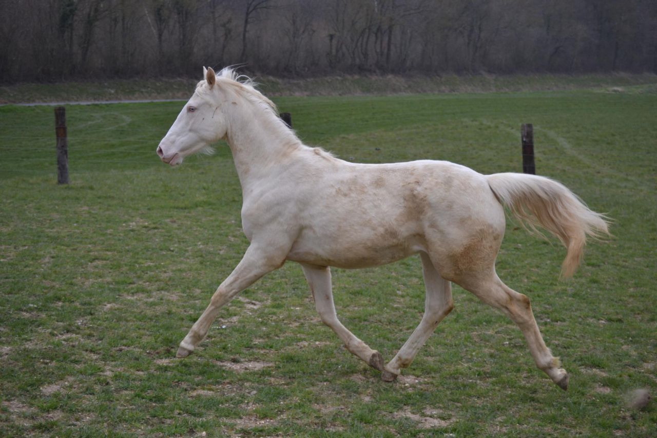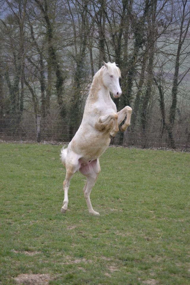 | Dire merci | La base de sa crinière pousse gris. Le bas des jambes commence aussi. Elle est cernée Pour info, il existe des camargues qui restent fonçés, il y en a peu mais on peut en trouver. Ils ne sont pas autorisés à être inscrit au stud book de la race et donc ils n'ont pas le titre de camargue. Ca me plairait bien tiens, pour l'originalité. |