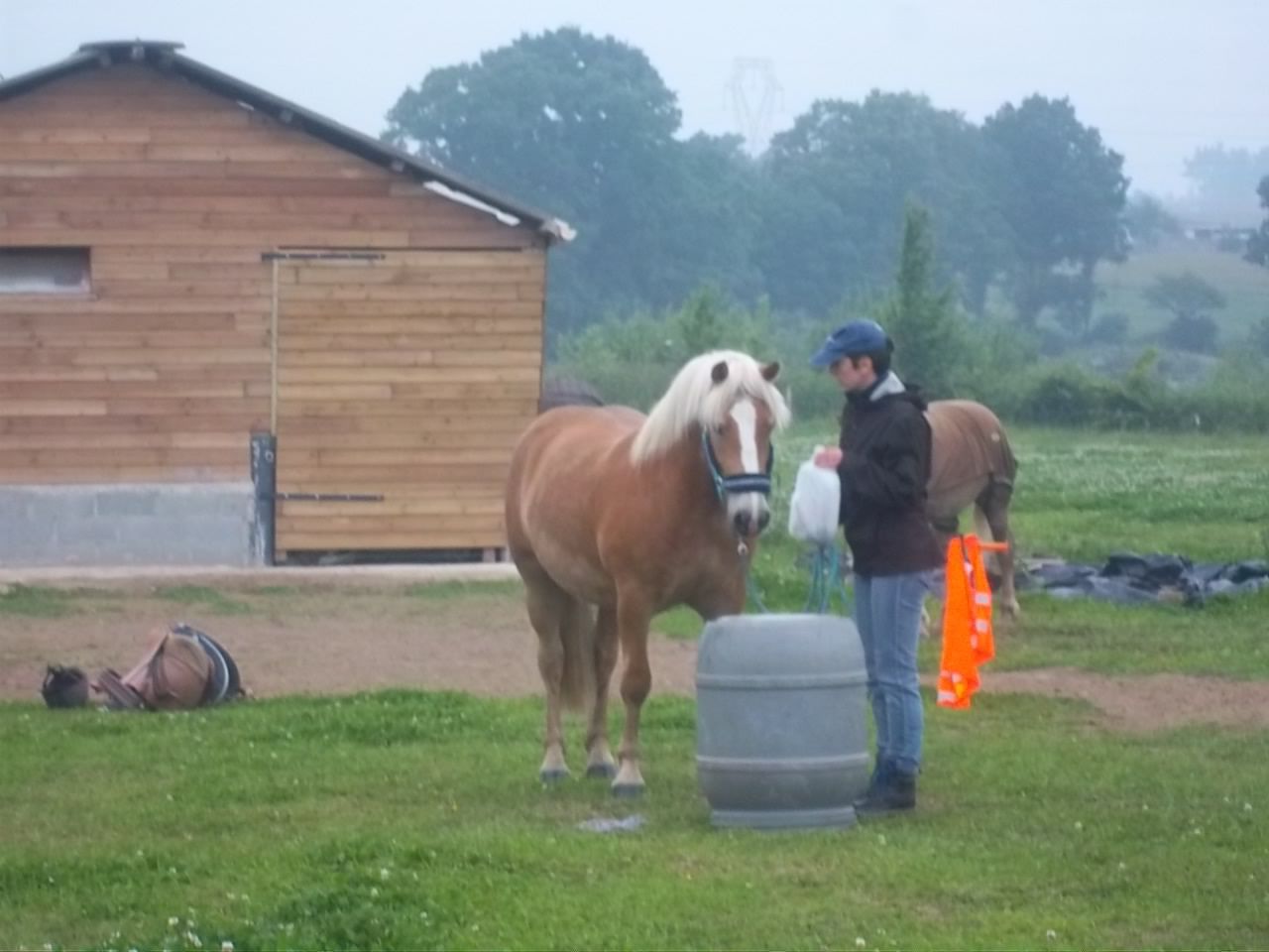 | Dire merci | Mon gros a une copine Trait Bretonne en vacances chez nous depuis 5 jours (elle a fait 6 h "à sabots" pour arriver chez nous , si, si un trait ça a de l'endurance!!). ![]() Elle s'entraine à la maison pour des qualifs loisirs montés qui auront lieu dimanche 23. alors meme si on y va pas , nous, on fait le parcours aussi !!! ![]() ![]() ![]() Le plus dur a été ça : passer sous des ballons accrochés a des rue balise.. ![]() ![]() Mais il a fini par tout réussir !! ![]() (désolée, photos "bofbof"! ) |