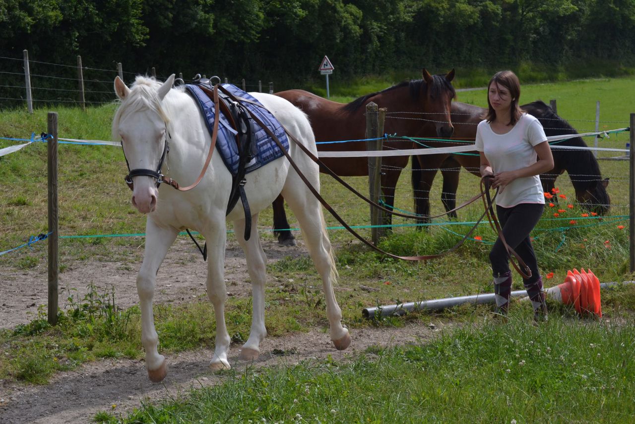 | Dire merci | Vu qu'on change de page, je remets : Aujourd'hui, grosse après midi avec Boudin : On a commencé par un petit pansage avec un Boudin impeccable qui se laisse brosser partout ! Depuis les douches pour les M&A, aux oubliettes les bagarres pour avoir le droit de brosser les jambes !! Au bout de 18 mois de bataille, je crois qu'on a enfin réussi à s'entendre Ensuite on a bossé en longe : rappel des cessions des hanches, tête et épaules, c'est mon rituel pour lui dire "bon aller, là on bosse" et de toute façon il y a encore du boulot car elle n'est pas encore légère. Puis on a bossé l'arrêt et le ralentissement. (Oui parce que pour l'accélération il n'y a pas de problème bizarrement )Elle était cool, alors j'ai tenté en liberté (la dernière fois qu'on l'avait fait, elle avait tellement pété en l'air qu'elle avait dérapé et s'était pris les pieds dans la clôture ). Dans le rond, il y a un paquet d'herbe donc quand je disais "stop" pour elle ça voulait dire bouffe. Du coup, j'ai eu de super arrêts bien nets avec le nez par terre Grâce aux conseils de Marine, je trouve des solutions à mes interrogations. Merciiiiiiii Marine Ensuite, j'ai mis le filet à ma Boudinette par dessus le licol et on est parties en balade toutes seules. Elle a été TOPISSIME ! On a commencé avec un pré plein de veaux qui courraient vers la clôtures, on s'est arrêtées juste au début du champ, on a attendu qu'ils déboulent tous et ensuite elle est passée calmement en serrant les fesses On passe souvent à côté d'un parc d'attraction, on voit 1 manège et on entend les gens hurler, la musique etc, ça passe nickel. Mais aujourd'hui, je voulais essayer une autre balade, on est passées devant le parc, donc devant une dizaine d'attractions. Et ben c'était très sportif avec les "pchiiiiiiiiiiiiiiit", "pouf", "paf","bim", les roues du train sur les rails, le bruit de l'air dans les élices, les hurlements, les musiques et tout ça. Et Boudin qui n'appelle que très rarement les copains, appelait les manèges Enfin, n'importe quel loulou se serait contenté de tracer avec le meneur qui fait drapeau derrière, et bien Boudin, elle, acceptait de s'arrêter pour regarder et d'avancer. Bon, s'était chaud, je faisais pas ma maline surtout que c'est 500m sur une route à 90km/h et j'ai du la faire tourner autour de moi un paquet de fois. Mais au final elle a quand même été chouette ! Arrivées dans les chemins de campagne, j'ai eu super envie de partir à la recherche de nouveaux chemins, je me suis rappelée d'une entrée de forêt qui m'avait fort intéressé. J'y suis allée et j'ai découvert de chouettes chemins : Bon, chez moi c'est la Normandie, ça ne fait pas non plus rêver comme les photos de Bayla Le seul hic, c'est je n'ai jamais trouvé la sortie ! Après plus de 5 km j'ai du faire demi tour Comme vous pouvez le constater, Boudin n'a aucun problème pour manger avec le mors ![]() Bon, chez moi c'est la Normandie, ça ne fait pas non plus rêver comme les photos de Bayla Le seul hic, c'est je n'ai jamais trouvé la sortie ! Après plus de 5 km j'ai du faire demi tour Comme vous pouvez le constater, Boudin n'a aucun problème pour manger avec le mors [img]http://fbcdn-sphotos-g-a.akamaihd.net/hphotos-ak-prn1/1010439_10200667478222756_2007428019_n.jpg" alt="" /> Petite pause en forêt (oui oui, 10 minutes plus tard c'est bien la même touffe d'herbe que sur la photo du dessus ) [/url] Et ma louloute sur le retour, une fois sorties de la forêt : Le mors c'est hyper acquis, quand elle n'essaie pas de manger avec elle n'est plus du tout gênée Comme quoi, l'habituation en douceur, il n'y a que ça de vrai Même au bout de deux heures, Boudinette était toujours parfaite, une vraie princesse, comme d'habitude ! Message édité le 30/06/13 à 22:23 |