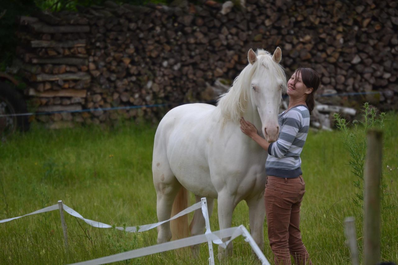 | Dire merci | Lovia : que c'est encore plus extraordinaire quand c'est pas prévu ? que je réalise pas bien encore où j'étais ? que c'était surtout un moment de complicité, plus qu'une étape au débourrage ? Je sais vraiment pas comment j'me suis retrouver là haut !! a cru, sans chapeau !! On venais de finir une super séance ( non prévu ). Courte mais une séance parfaite ... poulain connecter, qui cherche la solution, d'un calme étonnant pour un 2 ans attaquer par les bêtes qui volent et qui piquent ... je m'apprêtais à finir la séance par l'apprentissage de tours, comme je fait toujours, Dragon adore ça !! puis j'ai vu le marche pied ... et j'me suis retrouver sur mon Dragon ... qui lui a trouver ça parfaitement normal ... détendu et heureux d'être gratouiller Je sais pas si je recommencerais lors des prochaines séances ... je crois que c'est magique quand ça vient comme ça |