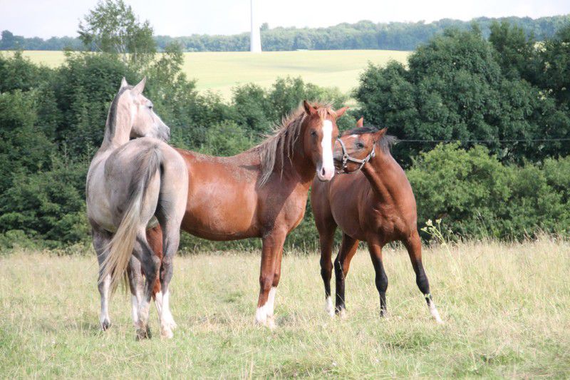 | Dire merci | pfiou quelle frayeur marine, mais ouf avec les bon reflex c'est passé. Ce matin j'ai ramené Boycott pour 2j tenir compagnie à mon 5ans ( j'ai ramené mon 3eme à son élevage pour convalescence). Bon déjà il a pas voulu monter dans le van après quelques coups de balais sur les fesses il est rentré.Arrivé au parc j'attache mon gris mon mari sort l'autre et je sors Boycott qui démonte le van. On lâche les 2 bêtes et Boycott rien à foutre part explorer le nouveau parc Finalement je chasse ma glue grise qui va voir Boycott et là c'est partit!! Festival de grand galop, queue sur la croupe bonds en tout genre Boycott a essayé de saillir l'autre qui s'est pas laissé faire, puis il s'est cabré pour jouer et mon gris l'a chargé en cabré et l'a expédié sur les fesses à le retourne ça calmé le petit Message édité le 03/07/13 à 14:51 |