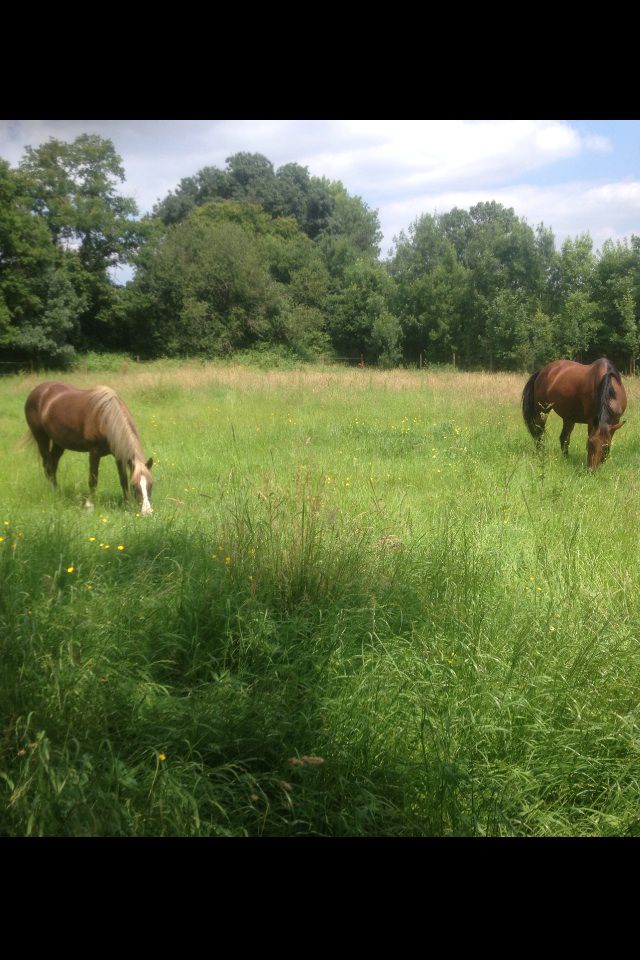 | Dire merci | J'avoue qu'avec l'herbe de cette année mes filles sont pas a plaindre du tout et sont bien rondes Balanka va être un sacre morceau quand même moi qui voulait pas d'une petite ponette, faut voir la masse et la grandeur de la bestiole !! Suis impressionnée !! Qu'est ce qu'elle est gentille et câline, elles m'ont BCp BCp BCp manqué !! Mon petit bonhomme de deux ans passé adore être sur son dos Message édité le 08/07/13 à 09:36 |