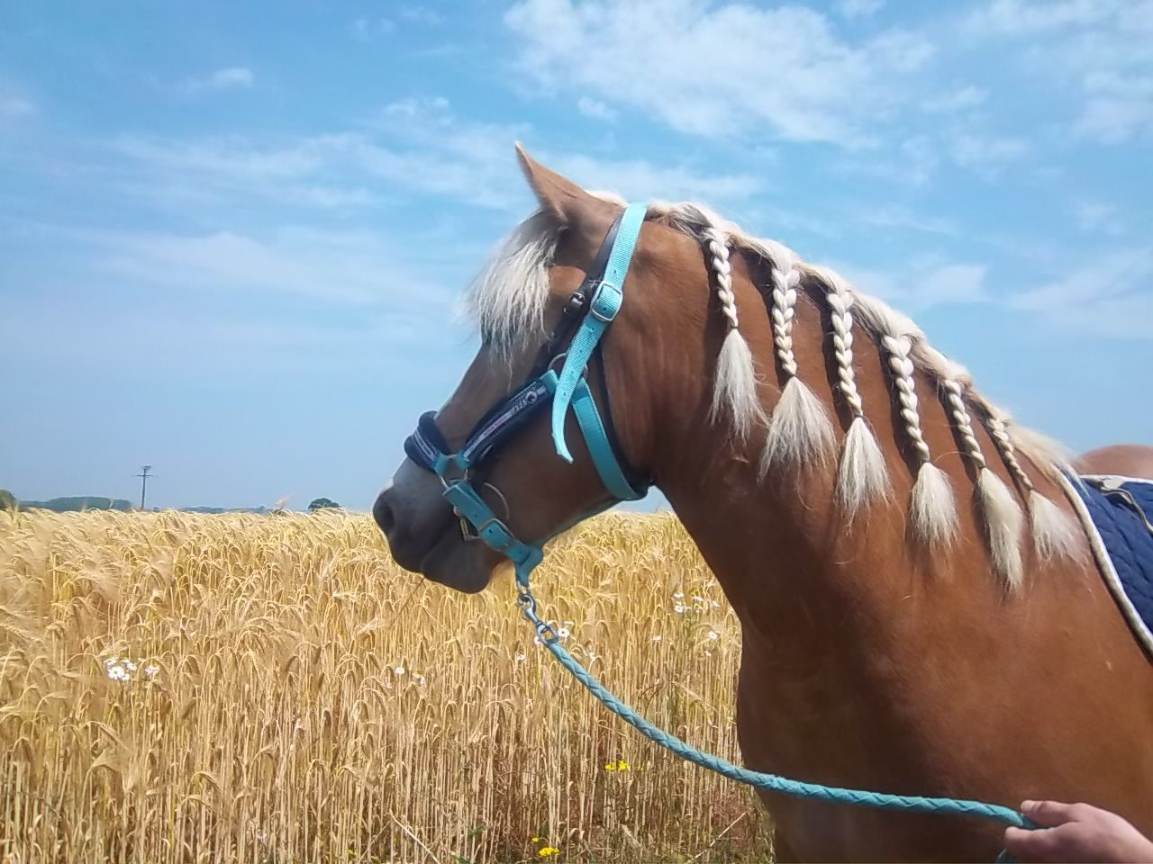 | Dire merci | Merci pour lui les filles ! C'est vrai qu'il est bonne pate ! Son seul défaut : etre un peu tétu (genre ; non je ne passerait pas entre les deux arbres, ça peux me mordre !!!)mais avec quelqu'un d'expérience il se fait avoir et céde !! ![]() Niveau boulot : Il sort en extérieur , n'a peur de rien, a un bon pas franc, a déjà oublié le mord qd il le porte, a eu la selle sur le dos, a eu un adulte qlques minutes en sac a patate sur le dos, il est capable de porter mes enfants en retour de balade d'une heure (pdt disons 10 mins). Maréchale: RAS ; il monte en van. Tout le monde le trouve intelligent et super Zen pour son age ! ![]() Je vais essayé de commencer un peu les renes longues sur le mord cet été. il part en débourrage en écurie accés rando/trec en septembre/octobre; il aura 3 ans en Février. Je suis fiére du petit suvageon de 1 an que j'ai acheté... ![]() |