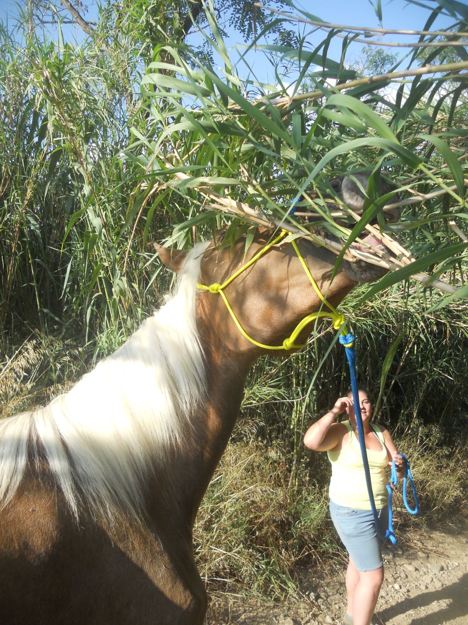 | Dire merci | Bayla : ton cadre est juste idyllique ! Je rêve d'amener un jour mon Boudin dans un endroit comme ça Tu n'as que des vêtements jaunes et bleus ou tu as d'autres licols ? Marine : Moi petite ? Nooooooooon Elle était tellement chouette cette journée Justa : Dis donc tu es super avancée dans le travail ! Moi je commence tout juste à l'avoir correcte au travail en longe au pas et au trot (et encore )En parlant de travail, Marine on est super appliquée avec Boudin, il va falloir revenir voir ça |