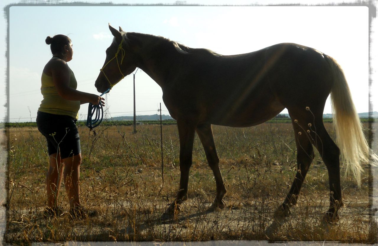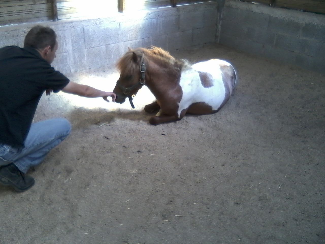 | Dire merci | De mon coté voici le nouveau pensionnaire chez nous, et donc le nouveau copain de mon Bosko : Caramel shet' entier d'environ 3 ans (on ne connait pas son age réel, c'est un sauvetage fait par ma maréchale chez un mec pas trés clair...) ![]() Il est débourré a la selle et va etre monté en tites balades par mes enfants. Et devinez qui se laisse mener par le bout des naseaux par ce petit d'a peine un métre ... ![]() ![]() |