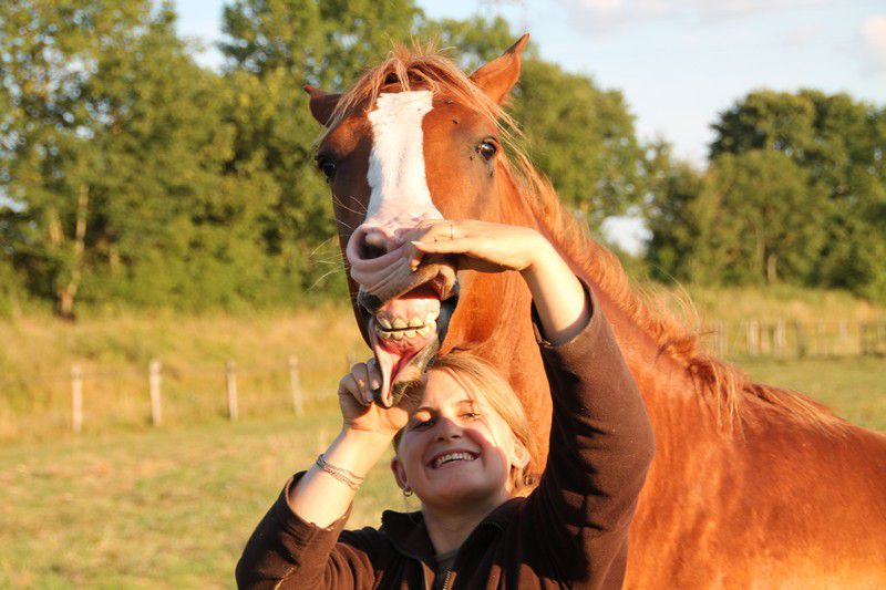 | Dire merci | Boycott ! Boycott ! Boycott Il a vraiment de belles allures et une bouille à croquer Enfin ça dépend sur quelles photos Mais moi j'aimerai bien le voir sans ses tresses ![]() Vahiquo : Dragon est une perle ... qui a les pétoches, c'est tout Voilà, samedi si il faut beau, on va au lac ... je prendrais Dragon en longe ... Youhouuuuuuuuuuuuuuuuuuuu l'envie est reviendue Mais y a un truc de bizarre avec Dragon ... comme si il manquait un truc... ou que c'était casser .... enfin y a un truc de bizarre ... Je crois que tu es juste redescendue sur terre parce que le poulain parfait n'existe pas, le Dragon à des défauts lui aussi et du coup tu es dans la remise en question ![]() Dragon fait toujours autant de grosse fuites en avant quand il y a un bruit derrière .... que faire ? Est ce que tu as essayé de le concentrer sur autre chose ? Lui parler, le mettre en exercice immédiatement ou des choses comme ça pour le canaliser ? Sinon, à part l'habituation et la désensibilisation je ne vois pas... Nani, ça faisait longtemps qu'on n'avait plus de nouvelles il ne fait rien d'autre si se n'est papouille balade en mains manger faire caca Ah bon il fait caca ? ![]() Moi ma ponette c'est une princesse, y'a que des paillettes qui sortent Trêve de plaisanterie, tu n'es pas objective c'est vrai mais moi si et il est joli comme tout ton belzechoupinet Et j'adore le licol qui fait ressortir les yeux ! (Marine prends en de la graine, c'est ça qu'il faut à Blue )Sinon Boudin bosse super bien en ce moment. J'ai enfin reçu ma commande aujourd'hui (surfaix + longues rênes) !! J'arrive au pré toute contente, j'installe le surfaix sur le Boudin, et on bosse d'abord le respect des distances puis en longe. Comme en ce moment elle roule super bien, je commence marche - arrêt - changement de main - trot - rappel et une fois que j'ai confirmation que tout est en place, au moment des rappels je demande des cessions différentes à chaque fois (parce que d'habitude je demande toujours un côté puis l'autre et du coup elle le sait et anticipe). Bref, elle me fait tout impeccablement bien, une princesse ma Boudinette Une fois que c'est fini, je saisi les longues rênes et là c'est le drame Elles ne passent pas dans les anneaux du surfaix ![]() Du coup j'ai bidouillé, j'ai passé les longues rênes dans les passants du tapis (ceux qui sont sur les côtés pour les sanglons) et on a bossé quand même. Et bien malgré une fois ou deux où on n'était pas d'accord et je me suis fâchée tout rouge, Mamzelle Boudin m'offre depuis 3 jours de parfaits slaloms sur demande ![]() Enfin voilà, comme d'hab je fonds devant ma pépette qui est toujours aussi gentille et généreuse. J'espère qu'une fois ce soucis réglé nous pourrons bosser tranquillement pour commencer les sorties en extérieur en longues rênes. Sinon, sur la page précédente j'avais posé une question mais personne ne m'a répondu ![]() La revoici : j'ai remarqué à plusieurs occasions qu'elle est raide à main gauche, qu'est ce que je pourrais faire pour l'assouplir ? ![]() |