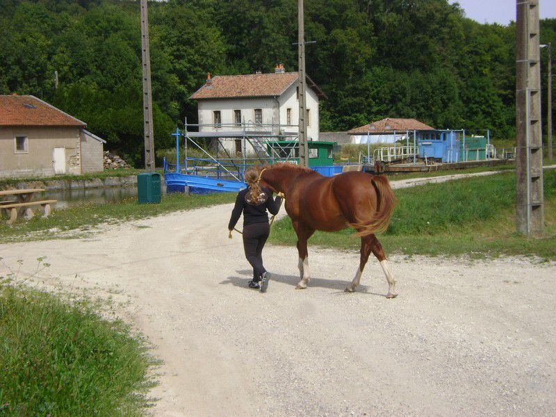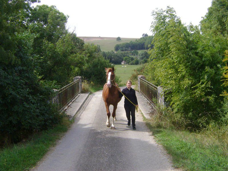 | Dire merci | Donc on arrive au parc, il arrive au galop Je met le licol, le sors et c'est partit. Boycott est interessé, part d'un bon pas sans ecouter les braillement de l'autre. On passe les vaches, les ponts sans soucis. On fait une pause brouting de l'autre coté du canal, mais bon Boycott prefère marcher. Et là... c'était sans compter sur les braillements non stop de Jojo de l'autre coté du canal Du coup Boycott repond, s'excite part en coup de cu Je reprend tout ça et on est repartit, mais Boycott n'est plus pareil, il est énervé, veut mordre, me pousse, me tracte ![]() On arrive au village on n'entend plus le copain Boycott se calme et redevient le poulain explorateur curieux de tout. On arrive dans ma rue, un chien bondit sur une cloture, je me fait exploser les doigts de pieds et Boycott du coup s'enerve de nouveau, surtout qu'il connait le chemin maintenant. Il tracte comme une brute, me pousse, mord, se pointe... Je me fache 5 min et puis d'un coup il redevient sage et finira la sortie tranquilou jusqu'au parc. Bref sortie mitigée. Il y avait beaucoup de vent ce qui donne quelques frayeurs, mais sinon quand il pique pas sa crise il est curieux et intéressé. les ponts ![]() pause brouting avant la crise ![]() on va voir le bord du canal et les choses intéressantes autours. ![]() une photo ensemble ![]() |