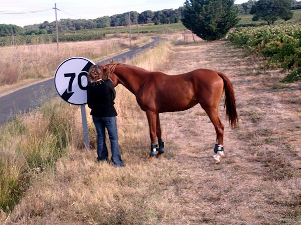 | Dire merci | Voilà voilà quelques photos d'aujourd'hui. Alors un vent de malade ... mais même pas peur ... on tente. On part moi à pied avec sale gosse et une amie à cheval. Finalement bébé passe sans problème devant... Voitures... a pas peur ! Panneau de signalisation a eu un petit sursaut quand on s'approche trop vite ben ça fait "bing"!!!! Vraiment super heureuse du comportement de mon bébé. Quelques embardées mais maitrisables.... Sans problème!! Le seul problème: bébé a failli monter sur le hongre de mon amie... un papi de 20 ans... le pauvre !!! Voilà le panneau : ![]() Puis un calin: ![]() L'œil fou, parce que parfois on a un peu peur quand même: ![]() On s'amuse bien avec le stick: ![]() Et enfin mon bébé (dsl pas de boue chez moi... ):![]() Voilà !!!! |