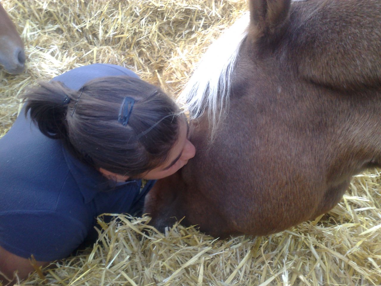 Ma pouliche a été séparée du troupeau ( imaginez bouchon...), les autres chevaux qui étaient logiquement parqués en haut et donc visibles pour ma pouliche ont eu l'accès à la forêt donc ils sont partis. (forêt inaxessible hier). Je précise que logiquement, nous étions en train de les vermifuger et que donc, ils sont mis ensemble dans un lieu commun pour 48h et ensuite ramassage des crottins. Sauf que suivant les conseils du véto et non obéir aux ordres de mademoiselle j'ai donné un autre vermifuge ( celui ci fait exactement ce qu'elle voulait + les gastérophiles ) mais n'ayant pas obéi aux ordres qui m'ont été assénés par texto, ce matin elle a décidée sans mon accord de séparer ma pouliche. Quand j'ai reçu un sms de sa part me disant qu'elle avait séparée ma pouliche et que je devais distribué le foin (foin moisi je précise) j'ai tout de suite appelé mes parents ( ils allait la voir de toute façon) qui en arrivant sur place m'ont appelé direct. La pauvre, elle était trempée ! En panique totale ! J'ai sauté dans mes fringues et j'ai appelé le véto : début de colique, intraveineuse de morphine et d'un autre truc (pour la calmer) et j'ai eu du bol qu'elle ne fasse pas un coup de sang... Je commence seulement à redescendre en pression mais j'ai des grosses crampes aux jambes. Qu'elle veuille me faire partir est une chose, qu'elle s'en prenne à mon cheval...elle va s'en mordre les doigts