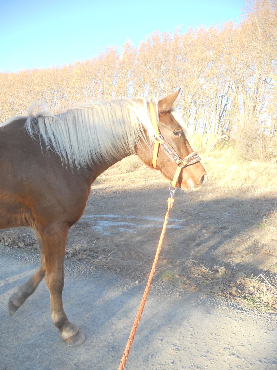 | Dire merci | Bosko, n'est pas mort sous mon poids...!! il fait même du lard comme un cochon depuis fin octobre au pré . après un débourrage qui s'est fait tout en douceur et dans le calme (pas programmé plus que ça), il profite de la vie de patûre et attend le retour de son pote shetland début janvier. Il s'ennuie même un peu. il n'a jamais été aussi proche de ses trois ans et vous embrasse bien ! ![]() |
