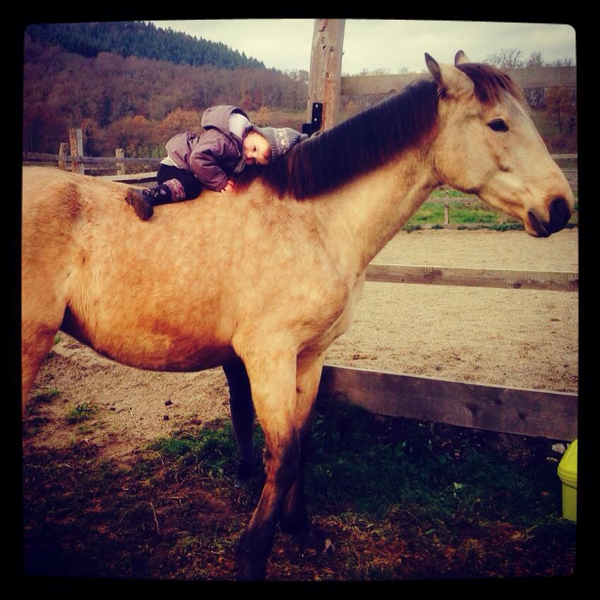 | Dire merci | Colomba, je suis en Alsace dans le haut-rhin. La première photo a été prise cet été. Bliss était 1 mois en vacance chez ma soeur sur les hauteurs (massif Vosgien). Maintenant elle est dans le Bas-Rhin! Chouettes installations! Pré h24 avec carrière et rond de longe. Hygie et bien c'est ma filleule qui fais un calin à Bliss! Impossible d'aller voir les chevaux avec elle sans qu'elle pose ses petites fesses sur l'un d'eux ! Alors elle a eu le droit d'aller sur Fawago (le paint) et un peu sur Bliss. Merci justa ![]() |