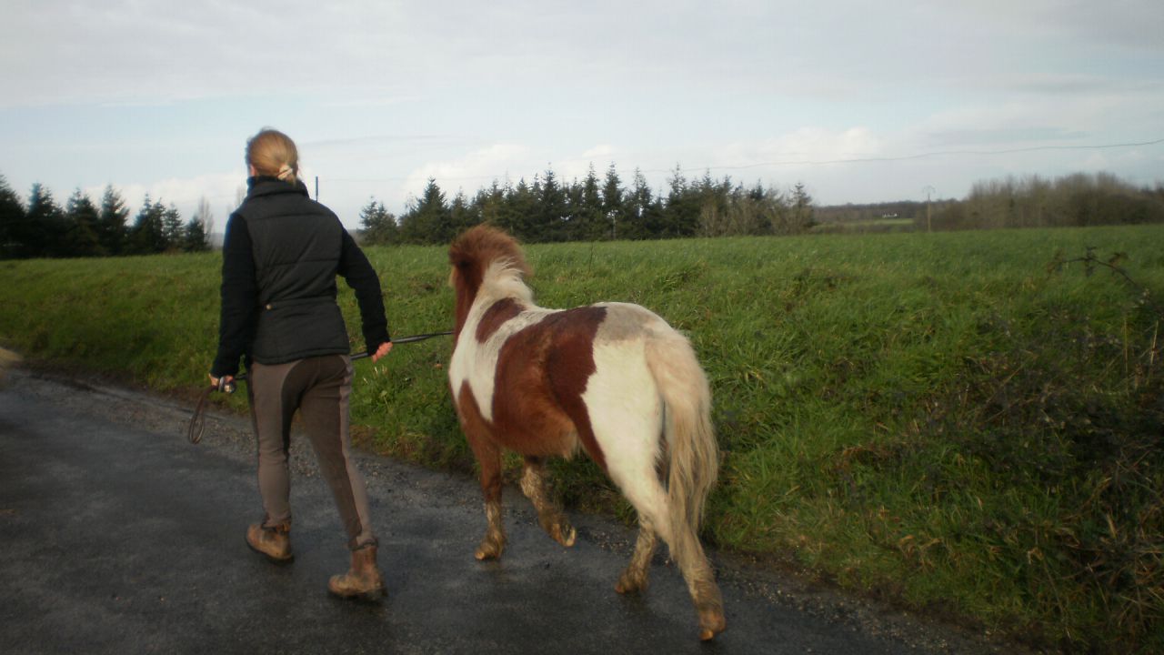| Dire merci | Bellou, quand je parle de la longe, c'est simplement répondre aux ordres, faire des transitions. Mais pour le moment je ne le fais pas dans le but de le muscler ou de lui donner de l'endurance. Je le "longe" très peu souvent, d'ailleurs je fais plutôt en liberté sans longe. Pareil, je n'ai pas encore fait galoper, j'attends que le terrain soit sec. En fait, concernant son physique, il est assez claquette mais je pense qu'effectivement au printemps il va s'arrondit puisqu'il était plus rond en automne. Par contre niveau mental, je ne sais pas, il est très curieux, très collant, il aime faire des petits exercices. Pour moi, ce sera un jeu d'enfant de Li monter dessus...mais peut être que je me trompe... Dans ma tête, j'avais pensé a le debourrer cet été, poser mes fesses dessus, installer la directions, un peu de trot et de galop et puis le laisser tranquille jusqu'à l'année prochaine. Mais comme je n'ai jamais encore debourrer je ne veux pas faire d'erreurs donc pour le moment je ne fais pas grand chose sauf le manipuler 3 fois par semaine, sortir en forêt 1 fois par semaine pendant 1 h, faire des petits jeux/ exercices. Et voilà, ça s'arrête la. Je me demande simplement si je vais mettre mes fesses sur son dos cet été...je pense essayer quand même mais ne surtout pas forcer. Je pense ne pas mettre de mors mais plutôt déjà lui apprendre avec le poids du corps, le langage corporel et installer le mors petit a petit pour 2015.... Vous allez procéder comment vous? |