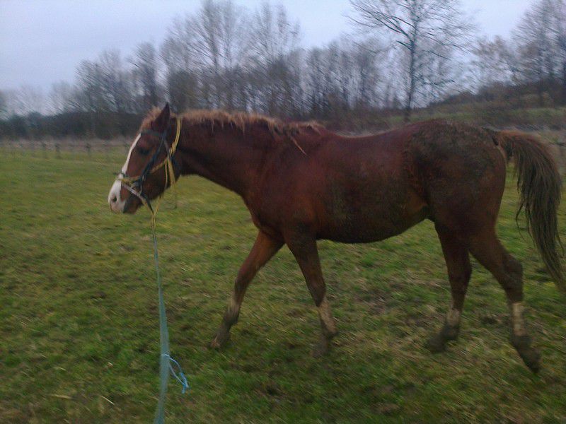 | Dire merci | il a commencé par se mettre un coup de jus tout seul pendant que j'essayé de trouver le poulain sous la couche de boue... du coup il est partit se faire des tours de parc au grand galop avant de revenir me voir...2 fois... J'ai un peu galérer à lui mettre le filet car il devient grand le morveux ( oui j'ai pensé à mettre la longe sous mon pied mais avec la boue ça tenait pas). Puis dans un sens nikel, il est allé sur le cercle comme s'il avait tjrs fait ça ( je rappel que c'est une 1ere). Au pas à l'arret.Puis Boycott le vrai est revenu à l'autre main. Il a tout tenté pour pas aller dans l'autre main : arrêt vers moi, demi tour, reculé, avancer à fond, ne rien écouter, essayer de manger... bref avec beaucoup de ténacité j'ai réussi à avoir qq tours propres mais il essayait de brouter quand même. Puis de nouveau à la bonne main j'ai tenté le trot et nickel, petit trot sur le cercle sans tirer ou dévier, transition au pas et à l'arrêt. J'ai laissé là dessus. Bon je pensais qu'il allait m'arracher les mains mais non il respecte bien le licol. Mais il a vraiment peur de la chambrière alors qu'il l'a jamais vu. Bref pas trop mal pour une 1ere. |