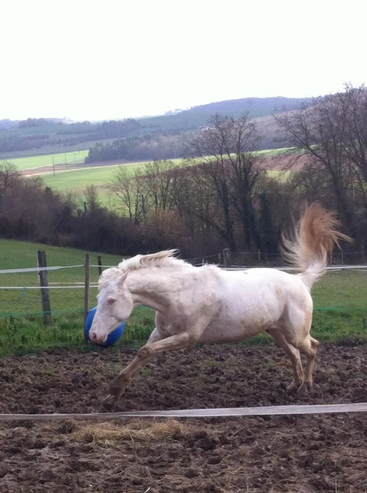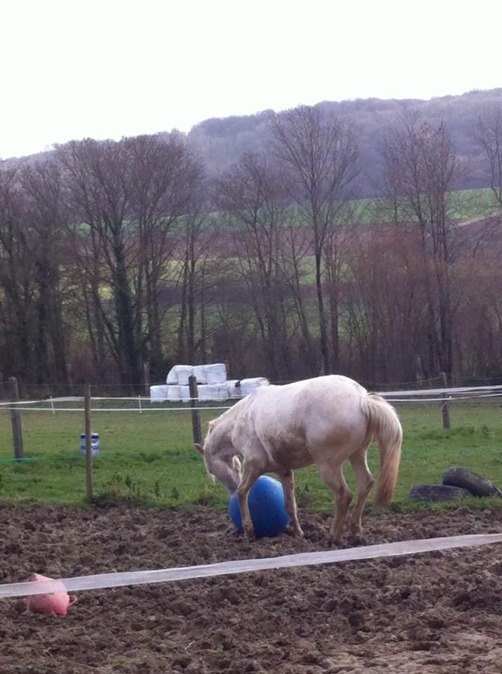 | Dire merci | toto : merci pour lui il fait encore très bébé de devant je trouve, et niveau comportement on dirait qu'il retourne même au stade poulain il goûte à tout ![]() Hier il était à fond avec son ballon ![]() Sauf que cette nouille c'est fait peur , il l'a jeté et le ballon a atterri sur son dos donc ça donne : ![]() |
