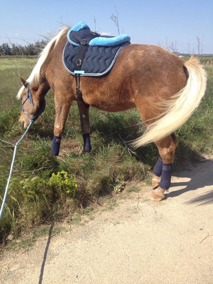 | Dire merci | Belloubouille Ma B (Bella de la Forge) est née chez moi, après avoir vendu quasiment tous mes chevaux (la majorité nés chez moi), j'ai gardé celle-ci sans vraiment la choisir, c'est simplement que les autres ont été achetés et pas elle car trop jeune au goûts des acheteurs, donc elle reste pour la relève le jour ou mon 22 ans sera en retraite. Des photos j'en ai pas de récentes, pour voir son évolution déjà une vidéo avec sa maman au tout début. Lien à 1 ans, jamais contente de se faire doubler par son fréro en balade ! Lien là vidéo plus récente, fin 2013, c'est la baie, celle qui voudrait bien prendre le dessus sur le poney mais qui n'ose pas ... depuis quelques temps elle a osé et à pris le dessus sur les 3 autres, c'est elle la reine du pré Lien Lien photos qui datent de la fin de l'hiver cette année, j'ai pas plus récent ![]() la petite baie ébouriffée ![]() c'était pendant une pause Thé/chocolat chaud au cours d'une de nos balades. On prends Bella en longe (en bât), elle respecte assez bien sa place aux 3 allures. Message édité le 13/05/14 à 18:23 |
