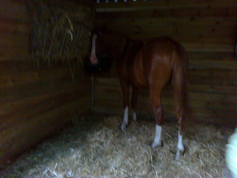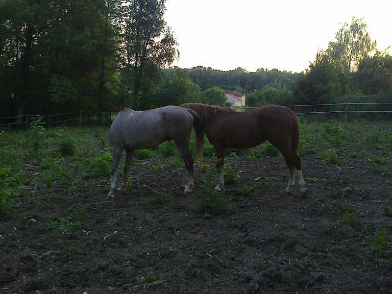 | Dire merci | là ce n'est qu'une étape, il ne restera qu'une semaine à la maison le temps des soins. Et avec mon hongre ils se connaissent il n'y aura pas de problème. Mais comme je pars 1 semaine dans 10j je peux malheureusement pas les garder à l'écurie, j'ai personne qui va les nourrir. Donc Nabil retournera avec les juments et Boycott partira à 50km chez un ami. |