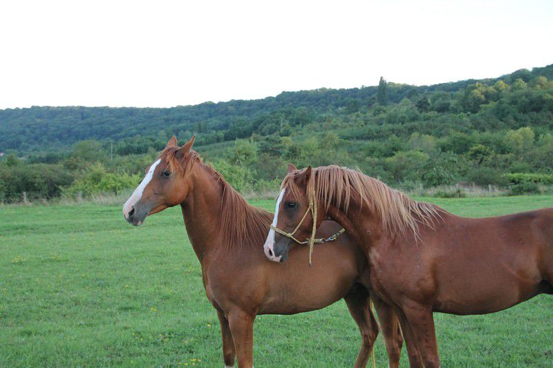 | Dire merci | Bonjour bonjour !! Et bien, Belloubouille....y'a même pu de suspens avec ton boudin contente pour vous deux !Bienvenue aux petits nouveaux également, je passe de temps en temps sur le post donc j'ai un peu de retard lol et les infos sont un peu décousues à suivre. Du côté de ma mistinguette on est en stand by...festival interceltique de Lorient oblige , mademoiselle semble se gratter depuis le début de l'été (elle a toujours plus ou moins fait et en toute saison)....ben du coup elle a eu le droit d' être passée à la vétédine savon sur crinière et haut de la queue et .....attention, un magnifique et super parfum Chanel n°5 ......du vinaigre sur tout le corps . Elle a le droit à son parfum tous les jours ( ses copains de pré sont jaloux ! ). Je trouve que c'est efficace. Elle a aussi commencé une cure de Biotine depuis début aout et je trouve ses crins déjà changés. |