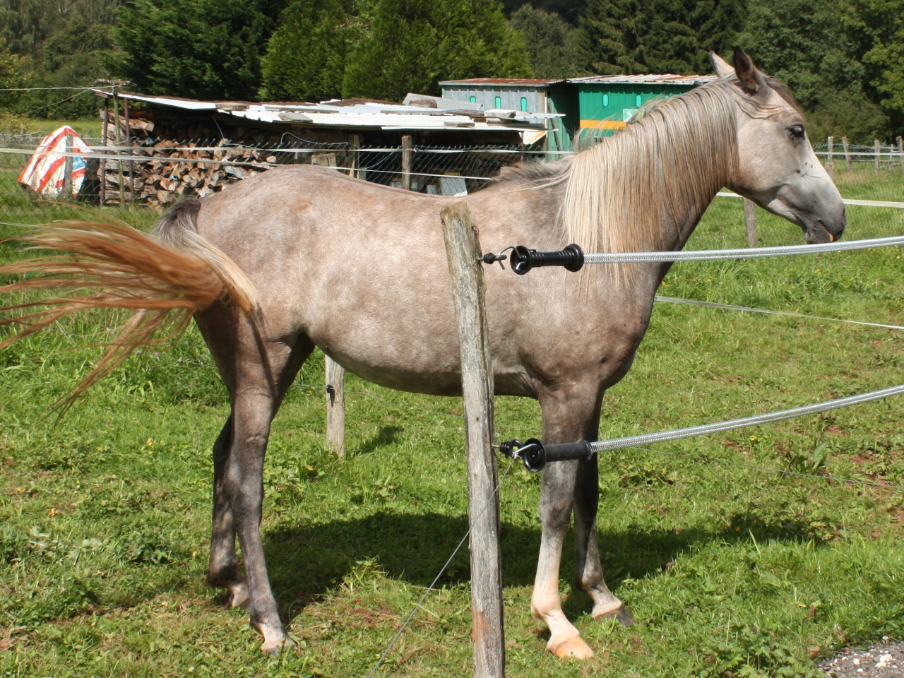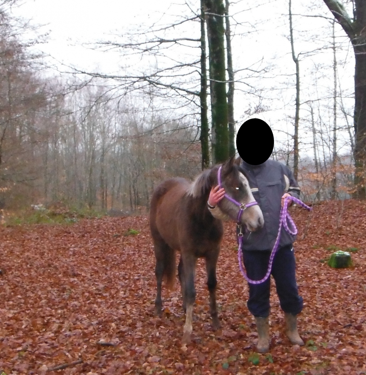 | Dire merci | Je n'ouvre que maintenant ce poste alors que j'ai une B depuis 2 ans Je vois que vous êtes déjà bien avancé dans le "travail" monté pour certains! Bahidja (3/4 PSAr, 1/4 SF) a 3 ans 1/2 mais continue tranquillement sa croissance au pré avec mon hongre, nous avons juste commencé le vrai travail à pied (jeux Parelli) la semaine dernière, en plus des nombreuses balades que nous faisons à pied depuis qu'elle est petite (mon conjoint la promène aux trois allures) en vue de son futur métier de randonneuse! Là, elle venait d'arriver à la maison, elle avait 1 an 1/2 : ![]() Et maintenant (je n'ai pas mieux comme photo récente) : ![]() |