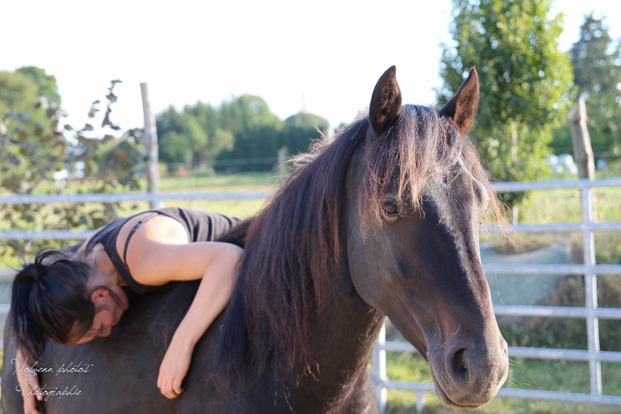 | Dire merci | Perso j'ai qu'une hâte c'est pouvoir partir à cru en ballade avec Bliss. C'est une question d'habitude. Mais perso plus jeunes et ben quand tes chevaux sont au pré en montagne et que t'as personne pour t'emmener. Ben à pieds tu prend ton sac de brosse et un filet et en avant. Du coup, j'ai énormément monter à cru. Plus qu'en selle d'ailleurs pendant une longue période! Et ce que ça me manque!! Mais là physiquement Bliss n'est pas vraiment prête. Donc je vais patienter encore. 1er ferrage pour Bliss lundi |