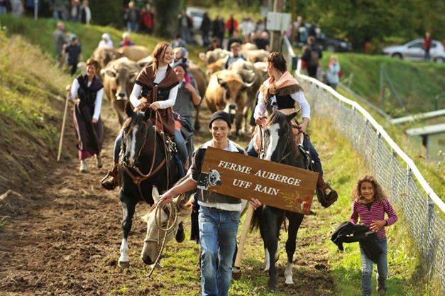 | Dire merci | Euuuuuuu ![]() On l'a faite il y a deux ans déjà. Bliss était avec mais à pieds du coup. Les juments ont pas mal chauffée au départ quand même. Toutes les vaches ont des cloches et il y a environ 50 personnes qui marchent avec. Sans doute plus cette année. Après on marche donc ça été. La pression était redescendue. Mais courant de la journée on passe dans un village. Il y a au total plus de 300 vaches qui y passent dans la journée.. Et donc un paquet de personnes.. dans les 3 000 sur la journée.. Donc j'ai tout de même une petite appréhension. Voilà la photo d'il y a deux ans. J'étais à cheval. et on voit la tête de Bliss ^^ ![]() |