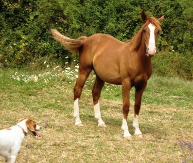 | Dire merci | bon j'ai répondu à Paulynee, merci de ne pas me faire passer pour une tortionnaire, de plus les chevaux que je débourre ne sont plus trop à qualifier de poulains (5-6 ans, ca va quoi !! ) et si il faut vous détailler tout ce que l'on fait avec, on a pas fini et le nombre de pages de ce post ne suffirait pas à vous satisfaire (mais je suis ok avec vous sur le montoir, sauf que moi je ne l'utilise rarement voir jamais, c'est tout... par contre, chose que je fais et que bcp de font pas, je monte à gauche et à droite, ce qui évite de tirer toujours du meme coté, j'alterne et ça, ben j'en vois peu le faire meme avec un montoir )sinon belloubouille le stop arret c'est le meme mot pour dire la meme chose en gros quand je suis avec mes chevaux au pré, si je dis stop, ben ils arrêtent de me suivre, de se déplacer pour que je puisse en faire le tour sans avoir la tete devant moi alors que c'est le cul que je veux voir ![]() (cela peut etre le mot stop qui est utilisé ou le mot arrêt, de toute façon je leur apprend deux mots différents pour un même ordre : genre pour aller au pas, c'est "marcher" ou "au pas"... mais c'est mon fonctionnement chez moi) donc quand j'ai demandé un arrêt à mon cheval (peut importe lequel), je peux tourner autour ou le toucher sans qu'il bouge (et ce le plus souvent en liberté) donc si je prend l'exemple de Chav (qui a donc un an de moins que vos B) si je lui dis arrêt, stop ou pas bouger (tiens oui là ya trois ordres différents pour la meme chose ) ben elle ne bouge pas et je peux donc venir jouer au niveau de son dos/ventre et donc faire ce que je veux, m'appuyer sur son dos (ce qui devient de plus en plus dur vu sa taille) ou sauter à ses côtés sans qu'elle fasse un mouvement.c'est tout voila sur ce je vais continuer ma petite lecture de ce post |
