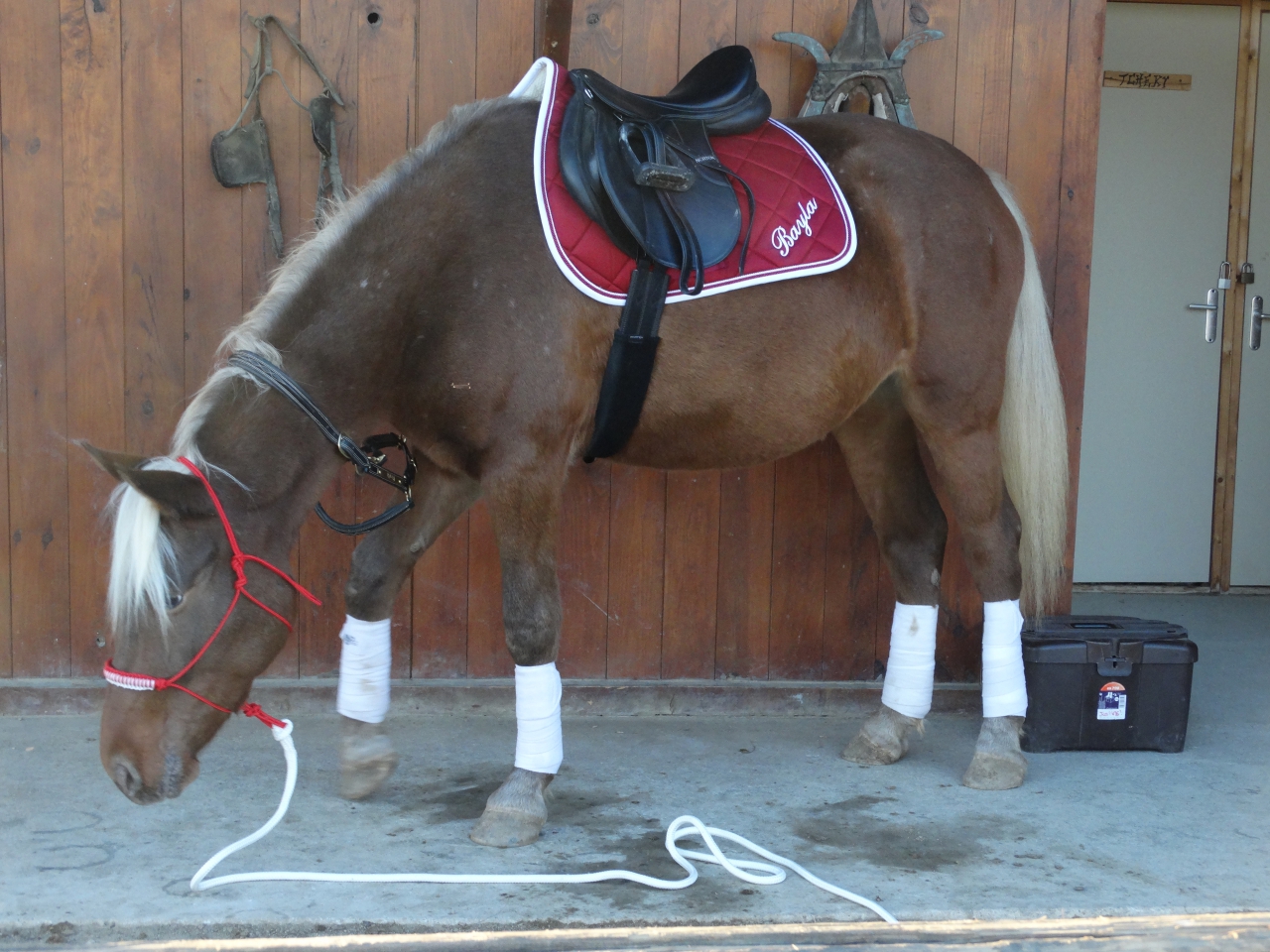 | Dire merci | Colomba : non du tout la c'est parce que l'equipement était neuf je voulais essayer ^^ sinon ils sont rarement bandé surtout des 4, je n'aime pas surproteger les membres, comme ni l'un ni l'autre ont de soucis d'aplomb j'en ai pas besoin. |