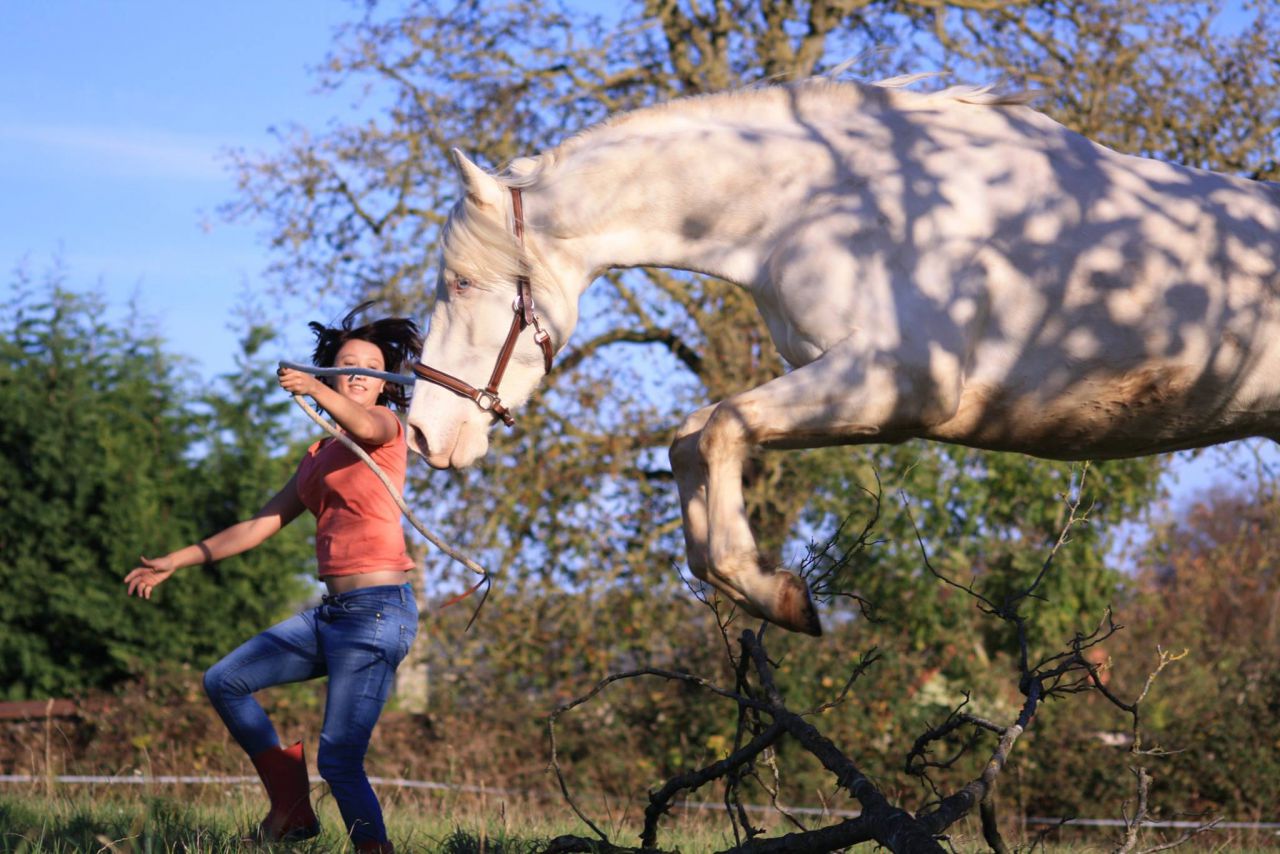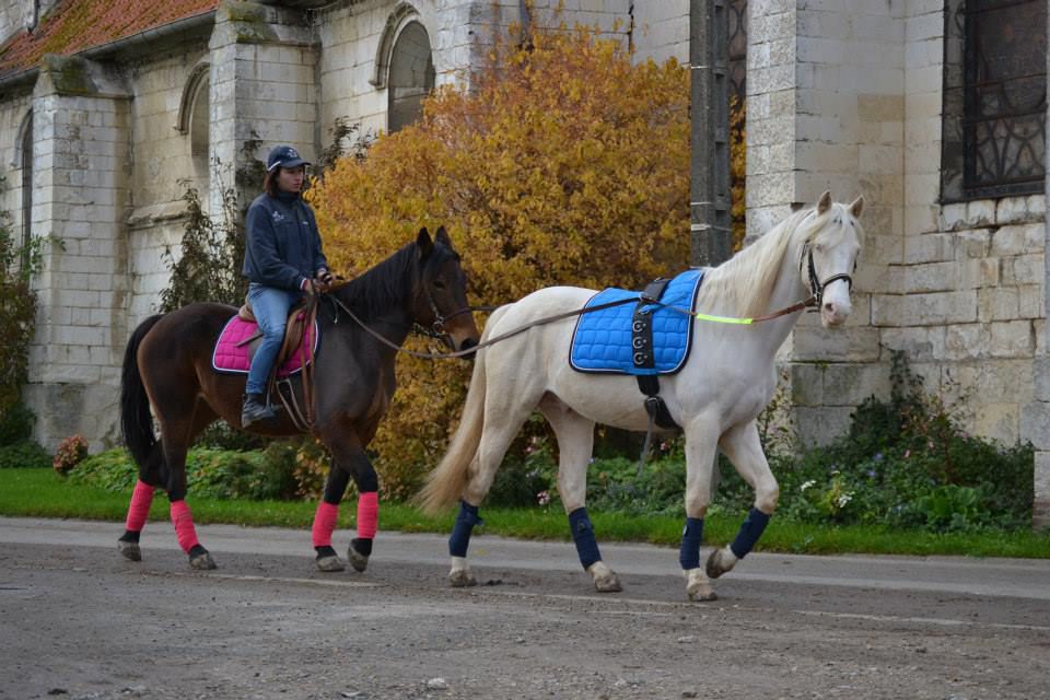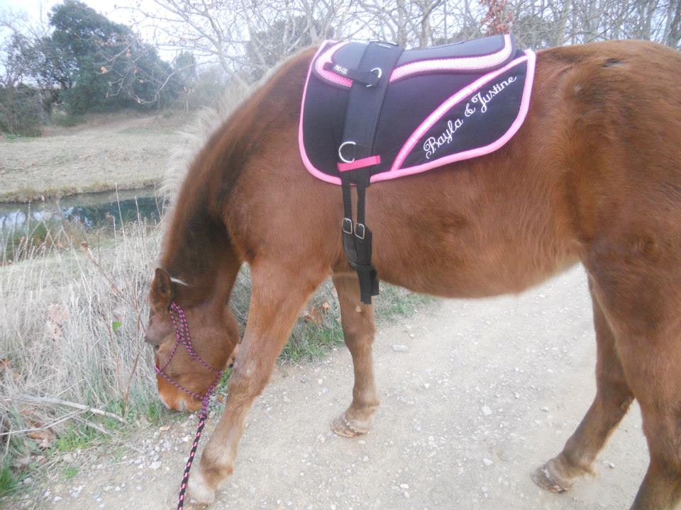 | Dire merci | J.Bayla : jolies photos d'un joli duo, bien assorti ! ;-) et félicitation pour vote travail qui à l'air de se faire tout en douceur Colomba : je ne connais pas toute l'histoire car je suis nouvelle sur le post. Je croise les doigts pour que ça finisse bien pour ton cheval, qu'il se remette au mieux. Il est jeune, c'est ce qui va aider le plus. A 3 ans, ma jument s'était esquinté le perforant d'un antérieur en faisant la conne au pré (vous savez, les fameux plein pot galop d'un groupe et on freine des quatre fers juste avant la barrière !). elle a été au pré dans un labyrinthe évitant toute prise d'allure pendant des semaines, puis remise au pré progressive. Les 3 vétos consultés m'avaient dis qu'elle serait sans doute non montable ou que pour de la promenade tranquille. Aujourd'hui, je la monte en loisir, elle saute, randonne, etc sans problème. Je te souhaite la même suite. Bon courage. Sinon, concernant mon travail avec balzan, le montoir est ok et j'ai la marche avant ! ok, c'est à 2 à l'heure, mais bon, c'était juste la seconde fois que je montais dessus avaec une demande de mise en avant, jusqu'à maintenant, on avait fait que des montoirs (et encore, peu). il n'a pas été traumatisé par la séance où la selle s'est retrouvé sous son ventre ! oufff ! par contre, être toute seule, c'est pas le top, ca serait plus simple de le manipuler à 2. ![]() |