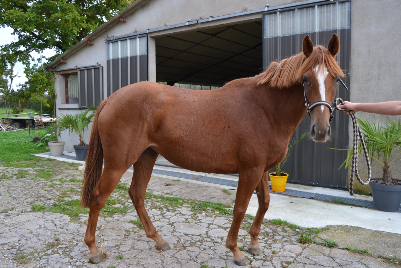 | Dire merci | Bonjour à tous ! je viens rejoindre le club des "b" puisque je suis l'heureuse propriétaire, depuis hier, d'une petite 3 ans. c'est une pur sang, mais qui n'a jamais couru ni même vu un centre d'entrainement. elle arrive tout droit du pré. elle s'appelle Bel royle. pour l'instant, on va déjà faire connaissance, et la laisser s'habituer à son nouvel environnement. une photo, qui n'est pas terrible, mais donne une idée de la miss. ![]() |