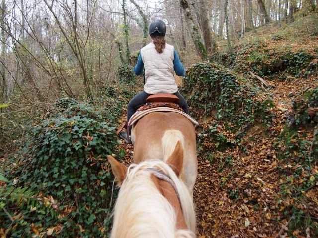 | Dire merci | belloubouille j'adore comment tu racontes cette promenade et les photos qui vont avec ! En fait, mon débourrage va paraître particulier à des personnes faisant de l'équitation classique en carrière ou manège. Car je débourre mon poulain, seule sans aide, en licol d'étho et sans infrastructure. J'ai pût durant environ 5 séances le travailler dans une carrière en herbe faite dans le coin d'un pré. Ca a permis de la travailler à pied et de faire le montoir et nos premiers pas au pas.Mais là, avec le temps humide et changement de pré, je continue son débourrage directement en extérieur dans des chemins et petites route. Et comme je suis seule et ai vraiment personne pour m'aider, je ne peux pas utiliser un cheval routinier pour partir devant et que mon poulain suive. voilà c'est tout ! |