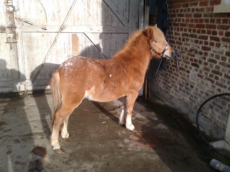 | Dire merci | Bonjour ! Aujourd'hui jour J : je sors Biscotte ! (j'attend l'effet du "dada tranquille" ) pas pu la sortir sous la neige et pluie battante toute la semaine. j'essai de vous immortaliser le moment tant attendu depuis presque trois mois ! Bilou01 tu vas avoir du boulot mais c'est un cheval qui ne devrait pas être mal quand il aura bien repris de l'état et bien commencé le travaille tranquilou. il semble avoir la bonne bouille taquine aussi |