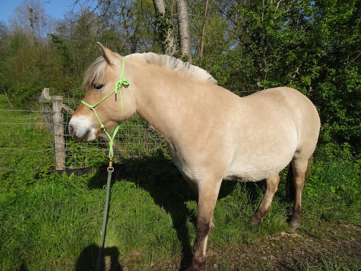 | Dire merci | Bonjour, Je me permets de rejoindre ce groupe car depuis Février, un B m'a rejoint pour mon plus grand plaisir. Breizh de son joli nom, est un Haflinger de 8 ans, qui pratique la randonnée, le travail à pied et en liberté. Il est accompagné au pré d'une pouliche type shetland d'un an pour son plus grand plaisir ![]() Place aux photos: A son arrivée: ![]() Au printemps devant notre cerisier fleur :![]() En balade: ![]() Voilà pour les présentations ![]() |