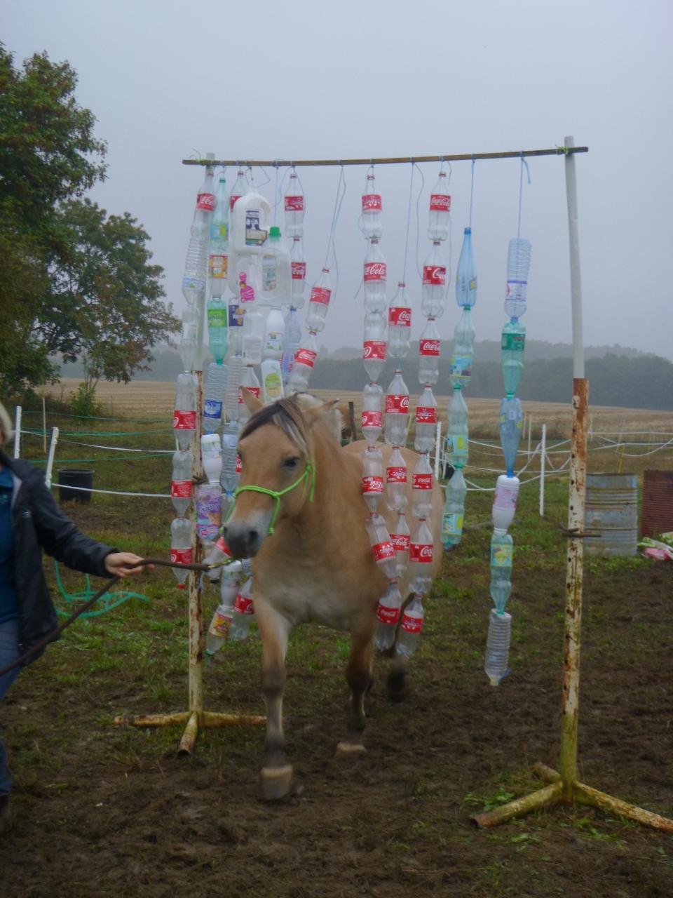| Dire merci | Belloubouille Birka n'aura pas forcément des séquelles de sa fracture. Tout dépend si les fissures ont traversé l'os au niveau du col du fémur. Dans ce cas elle pourra avoir de l'arthrose plus tard. Impossible à voir à l'échographie alors on verra. Si non tout va bien. A Grosbois, le véto m'a dit de la garder fine et là c'est galère! Sans rien elle reste une boule.Elle a été un peu montée sans problèmes (sauf la selle qui tourne). Pas de mors encore et le travail de débourrage va reprendre. On y va doucement... Une photo d'un PTV dimanche. Elle passe partout mais j'ai découvert une jument qui botte. Elle a trop stressé avec d'autres chevaux autour. A travailler donc. ![]() |