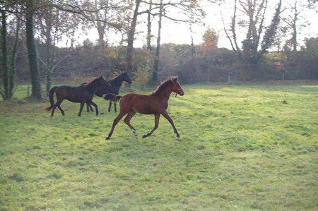 | Dire merci | tous ces bébé "B" sont plus adorables les uns que les autres voici pour la mienne: Bamaé (comme j'ai galéré à lui trouver un joli petit non) de La Vaux, camargue PP. né le 12 avril 2011. je la connais depuis sa naissance (c'est la pouliche d'une jument à une amie qui l'a fait pouliner pour moi.. )et je l'ai acheté début décembre !! sinon la petite se laisse licoler et mener en longe, reste tranquille à l'attache, donne les pieds, a été sage comme une image pour son 1e parage se laisse toucher partout, brosser etc.. et elle a déjà fait 3 trajets en van comme une grande !! et voilà, maintenant je ne compte pas lui en demander plus avant ses 2 ans.. je la laisser mener sa vie de poupou en troupeau sans trop lui en demander ![]() bref, elle a vraiment un très bon caractère !! bon par contre elle est trèèès indépendante depuis les 1er jours, mais.. ça l'a pas empecher de se barrer de son parc pour retrouver maman à l'autre paturage 4 km plus loin (avec passage par la route.. :levi le lendemain de son sevrage.. pourtant elle était avec 2 autres pouliches et 2 juments de son ancien troupeau qui avaient été mise avec pour rassurer les pouliches.. mais bon la mienne à juger ça pas suffisant ![]() heureusement plus de peur que de mal !! elle s'est juste un peu blessé à la cuisse, mais rien de grave..c'est déjà du passé !! (ah oui.. bien sûr tout ça n'aurait pas valu la peine si elle ne l'avais pas fait le 1e jours où elle m'appartenait.. tant qu'à faire des bétises, faisons les bien )en tout cas, je me réjoui de voir son évolution, elle a vraiment l'air d'avoir peur de rien, elle a sa tronche mais j'adore ça et surtout: elle est adorable !! bref c'est mon petit soleil, j'en suis gaga et je suis bien sûre totalement objective 1ers jours [url=https://www.1cheval.com/membre/services/photos/images/112152.jpg] ![]() [/url] cet été ![]() [url=https://www.1cheval.com/membre/services/photos/images/112150.jpg] ![]() [/url] [url=https://www.1cheval.com/membre/services/photos/images/112145.jpg] ![]() [/url] récemment.. [url=https://www.1cheval.com/membre/services/photos/images/112148.jpg] ![]() [/url] [url=https://www.1cheval.com/membre/services/photos/images/112147.jpg] ![]() [/url] voilou !! c'est vraiment sympa de pouvoir voir l'évolution d'autres poulain du même âge !! |