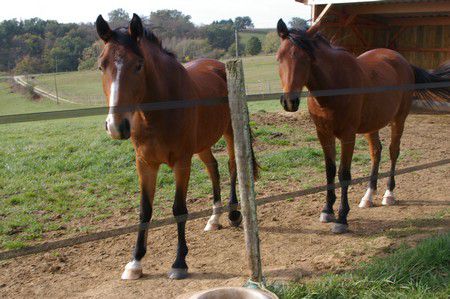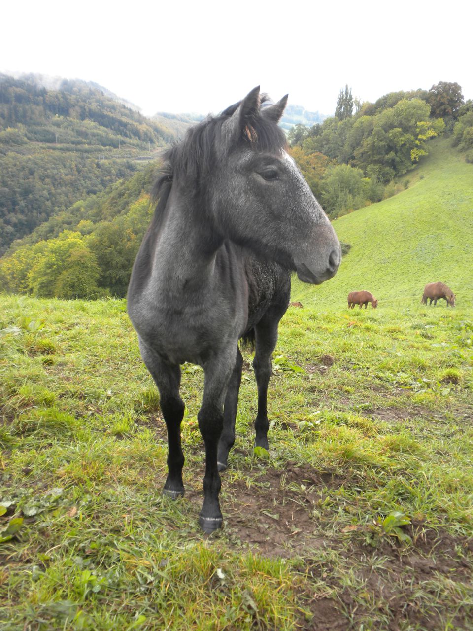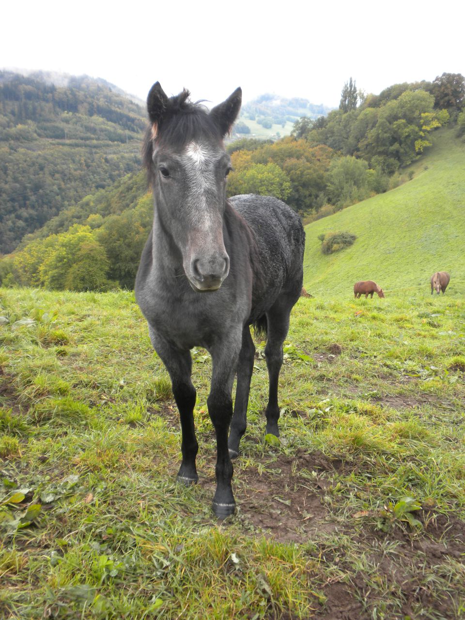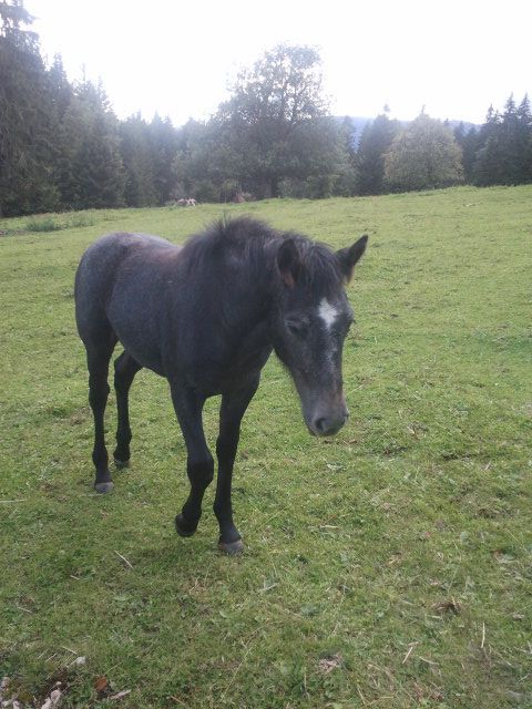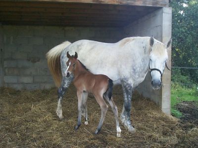 | Dire merci | Peut-être ses renseignements vont aussi t'éguiller: voici Ulsand et Vashra, les deux poulains de ma jument demi-trait X percheron, maman fait 1.60 et papa fait 1.55 environ, les deux psa sont de meme père et de même mère. ![]() Le premier c'est Ulsand, 3 ans visiblement plus petit que son frère Vashra qui n'a que 2 ans. ![]() Ulsand a la liste blanche. le voici petit avec maman. ![]() et voici le papa ![]() Et oui ! deux gris ne font pas forcément du gris ![]() |
