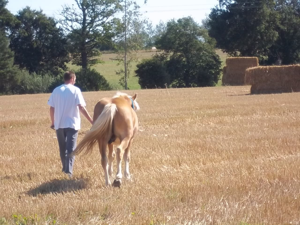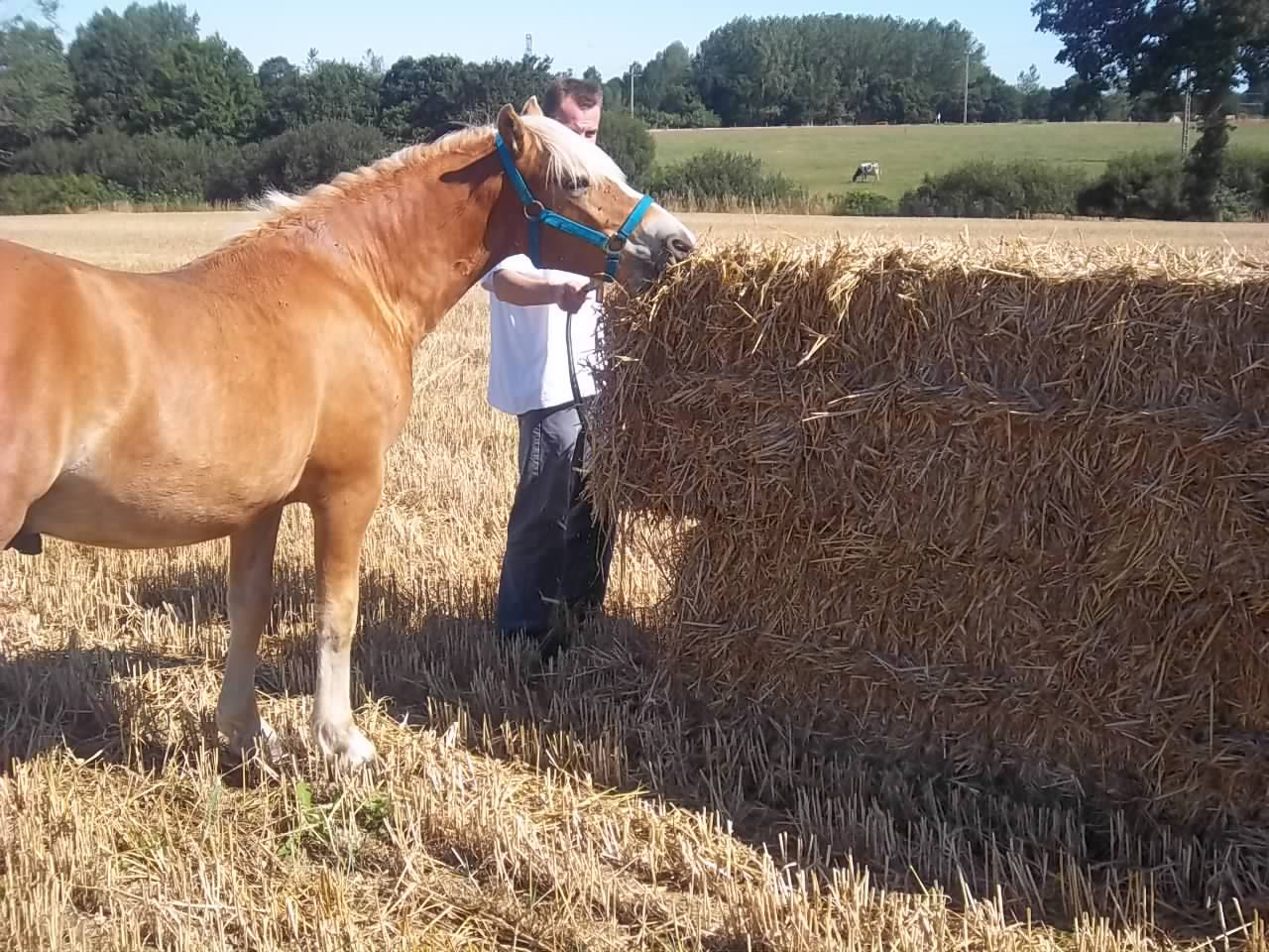 | Dire merci | nous on a fait une tite douche a l'arrosoir ce matin vu les températures et aprés on a fait avec "popa" une tite balade découverte de choses ... La paille coupée : ça fait du bruit sous les sabots!! ![]() ho , un big de paille ...! ![]() ça se mange ?! ![]() Aprés ce drole de truc blanc qui fait du bruit qd on tape dessus ... ![]() Et pour finir un portrait de poulain "jardinier" ! ![]() |