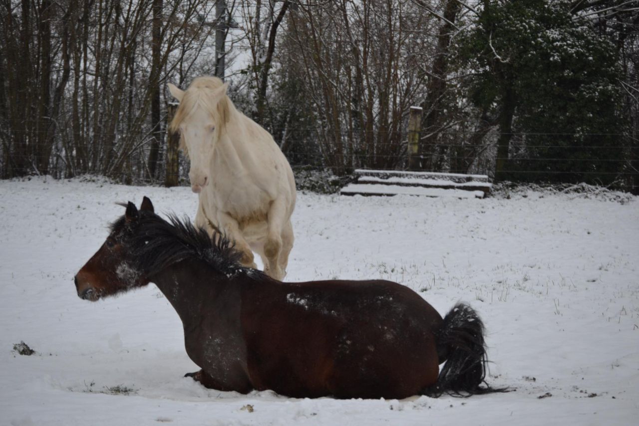 ben le mien il y a ses hormones qui le travaille mais il a tellement peur de ma jument , d'ailleurs ce matin comme elle était en train de se rouler il en a profiter, il c'est pris un retour assez violent de ma jument, au moins il respectera les femmes plu-tard celui la lol